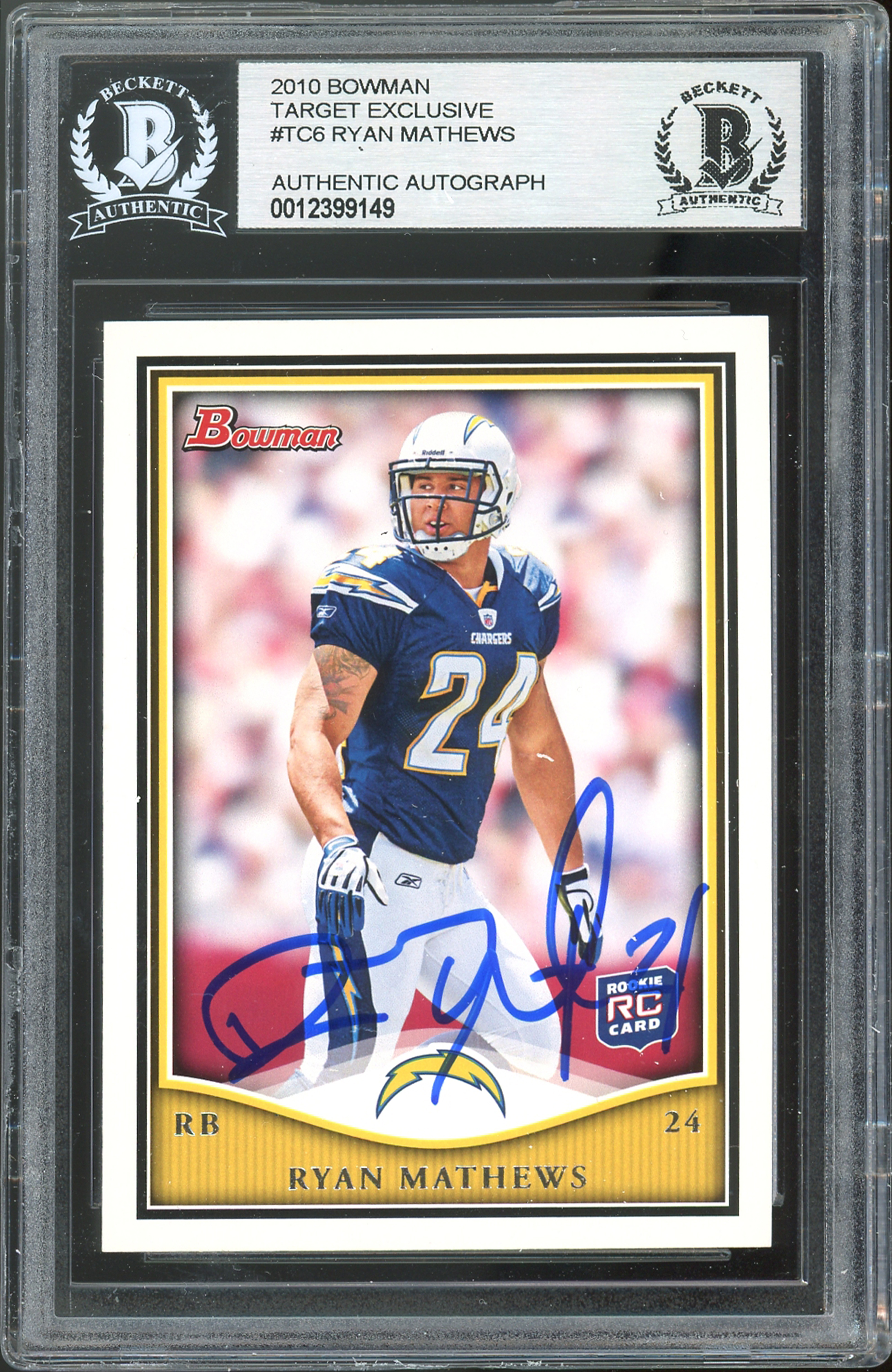 Chargers Ryan Mathews Signed 2010 Bowman Target Exclusive #TC6 Card BAS Slabbed