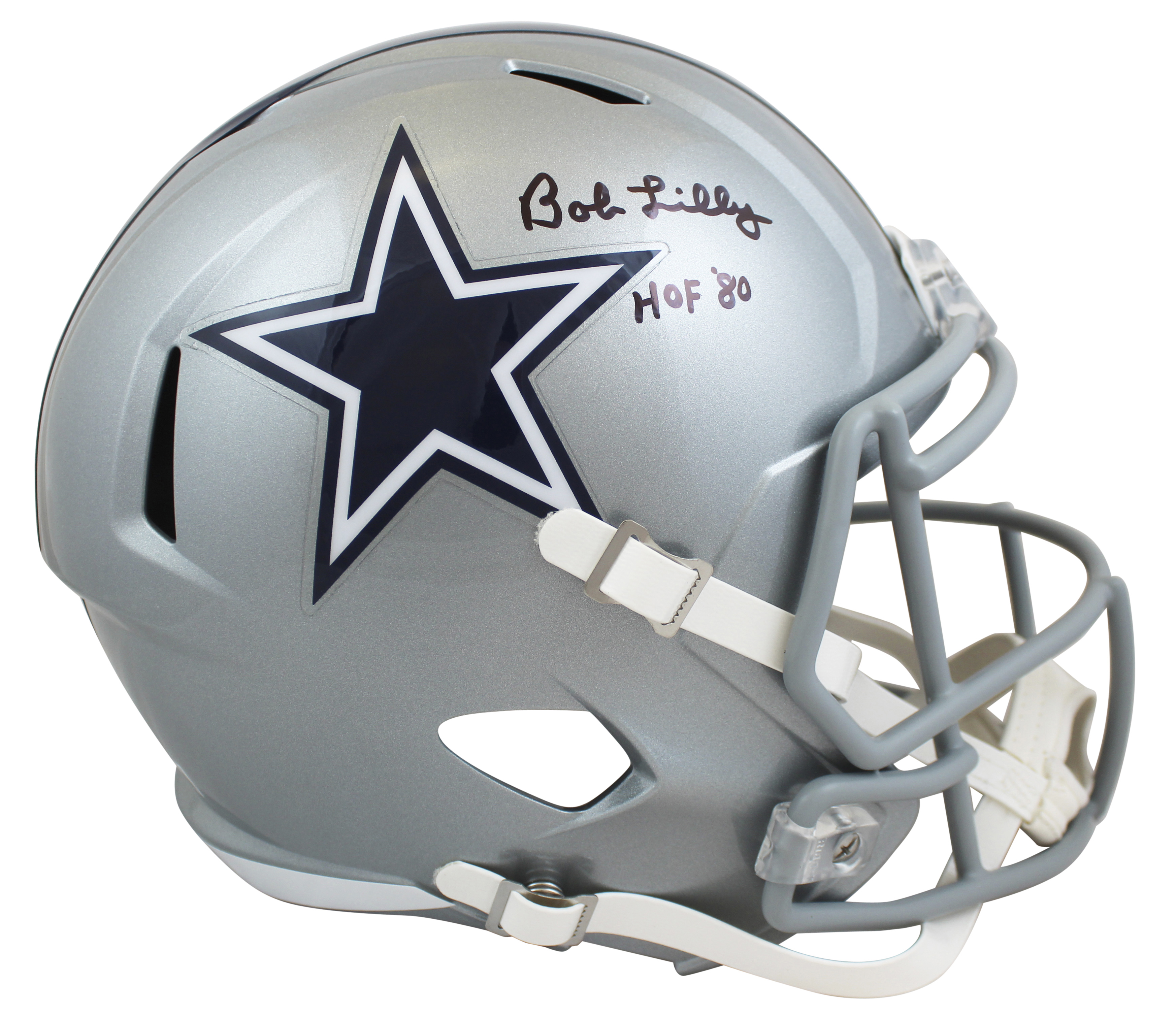 Cowboys Bob Lilly "HOF 80" Authentic Signed Full Size Speed Rep Helmet BAS Wit