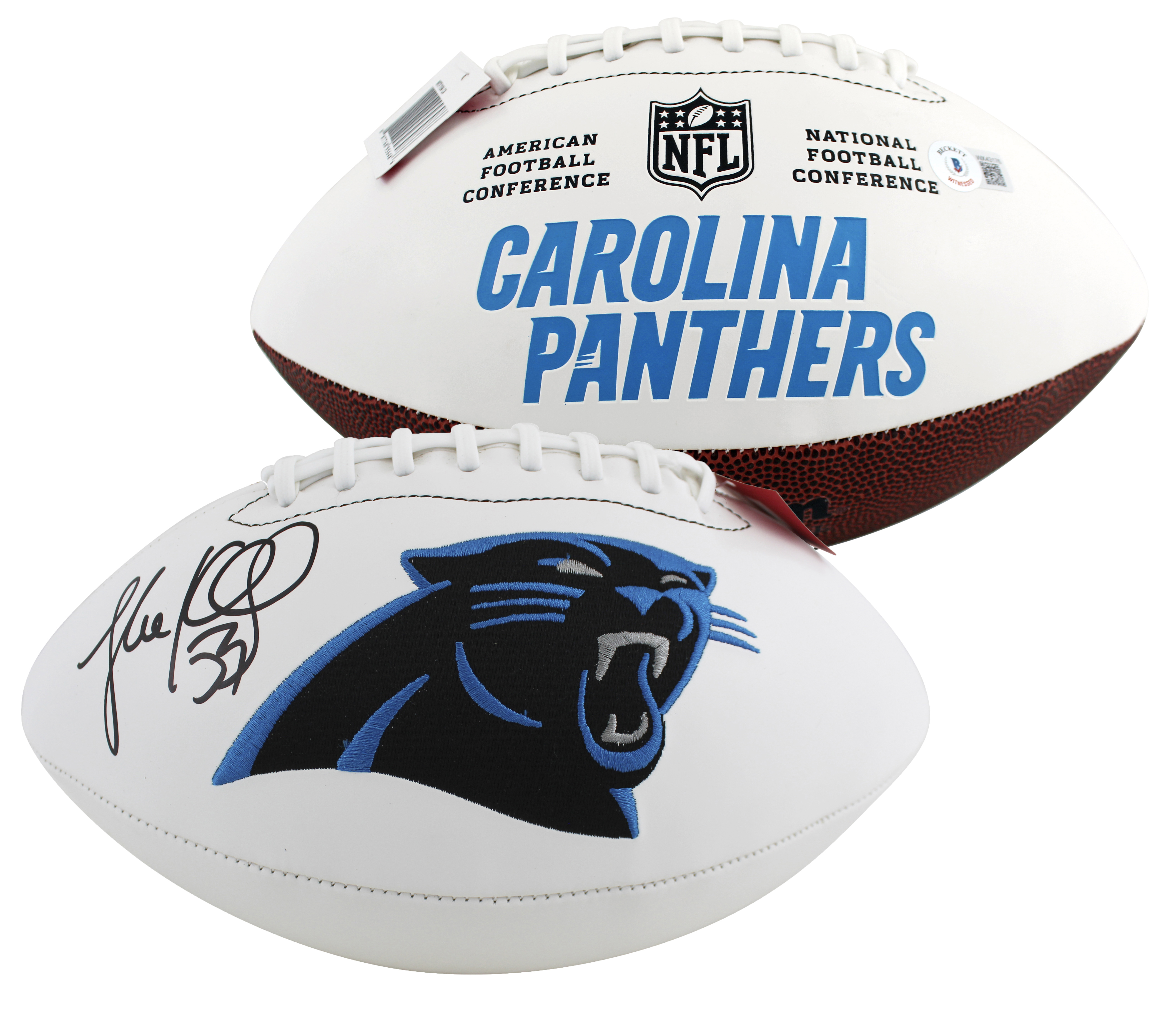 Panthers Luke Kuechly Signed Wilson White Panel Logo Football BAS Witnessed