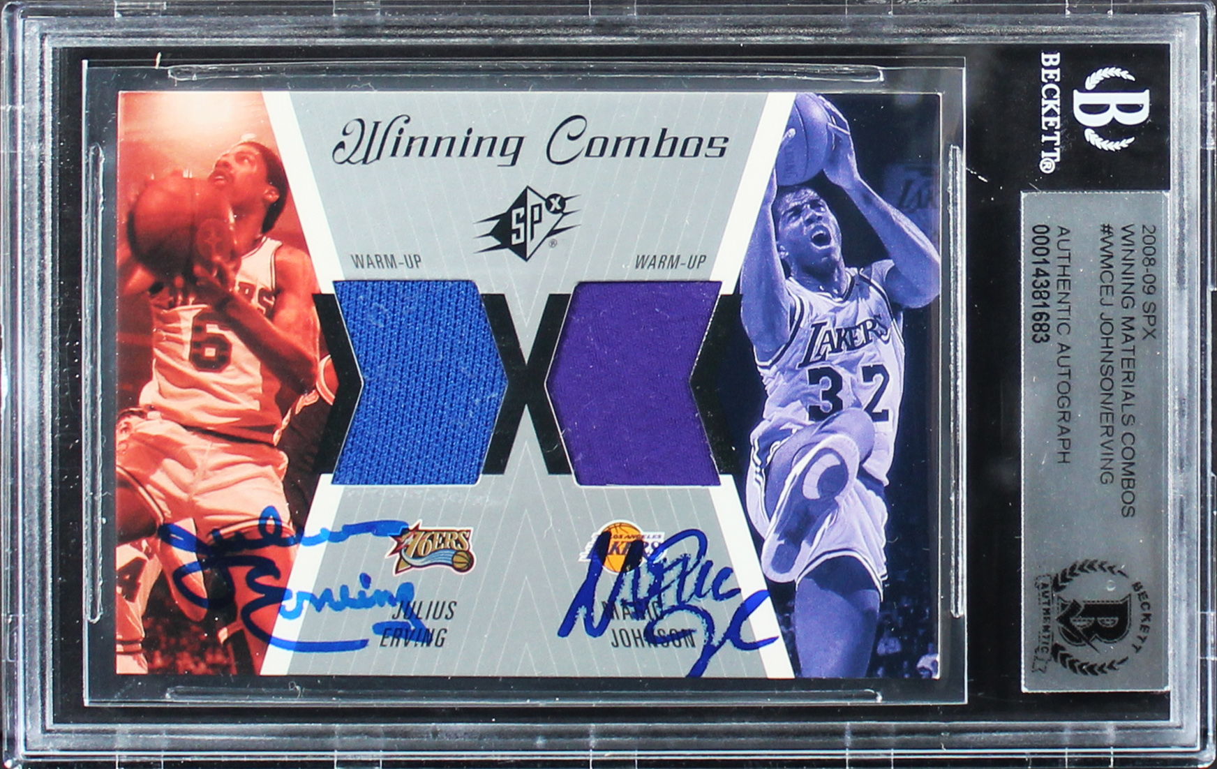 Magic Johnson & Julius 'Dr.J' Erving Signed 2008 SPX #WMCEJ Card BAS Slabbed