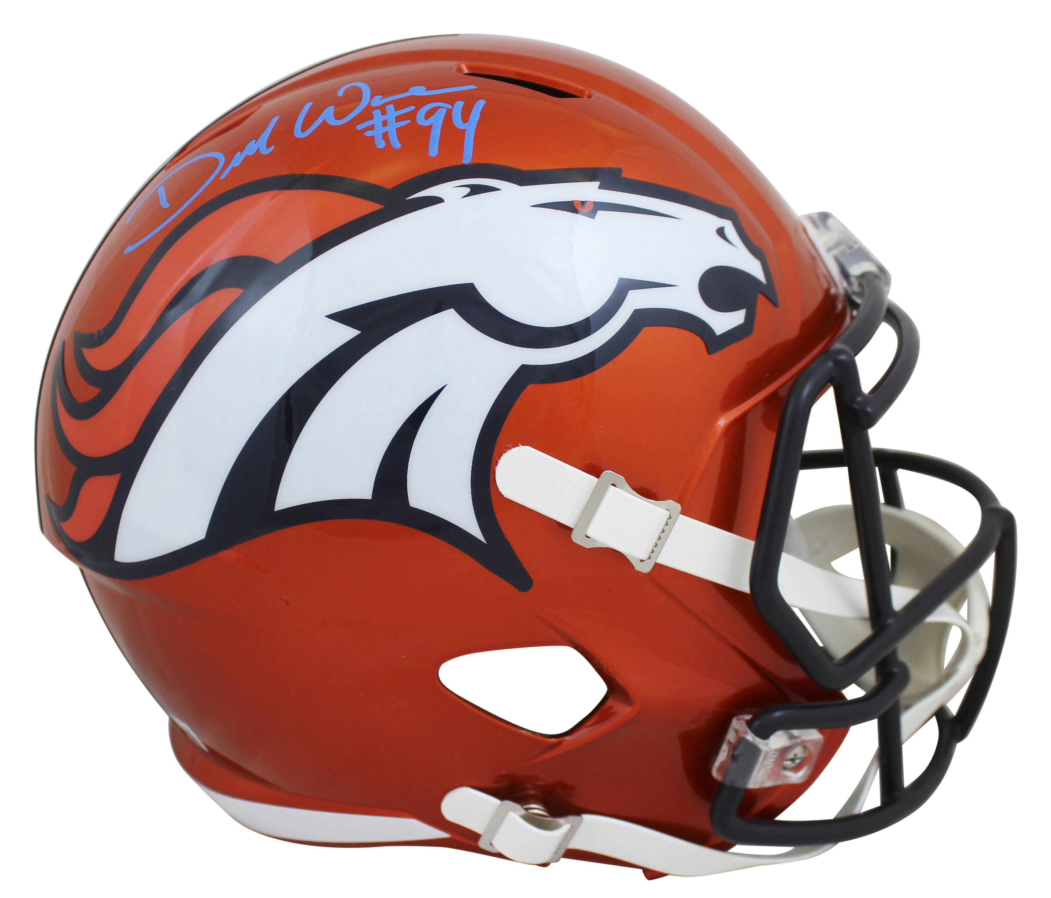 Broncos DeMarcus Ware Signed Flash Full Size Speed Rep Helmet BAS Witnessed