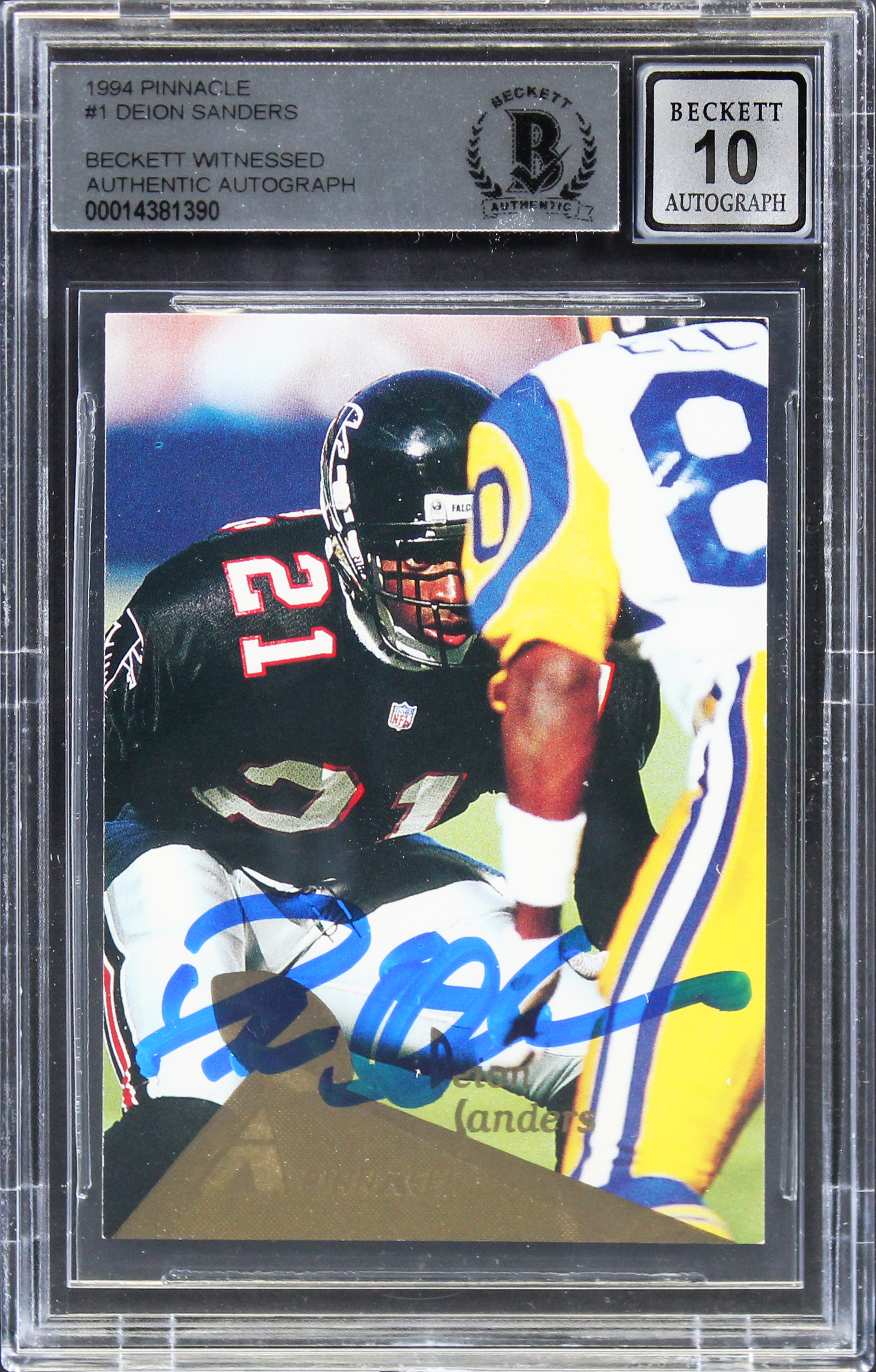 Falcons Deion Sanders Authentic Signed 1994 Pinnacle #1 Card Auto 10 BAS Slabbed