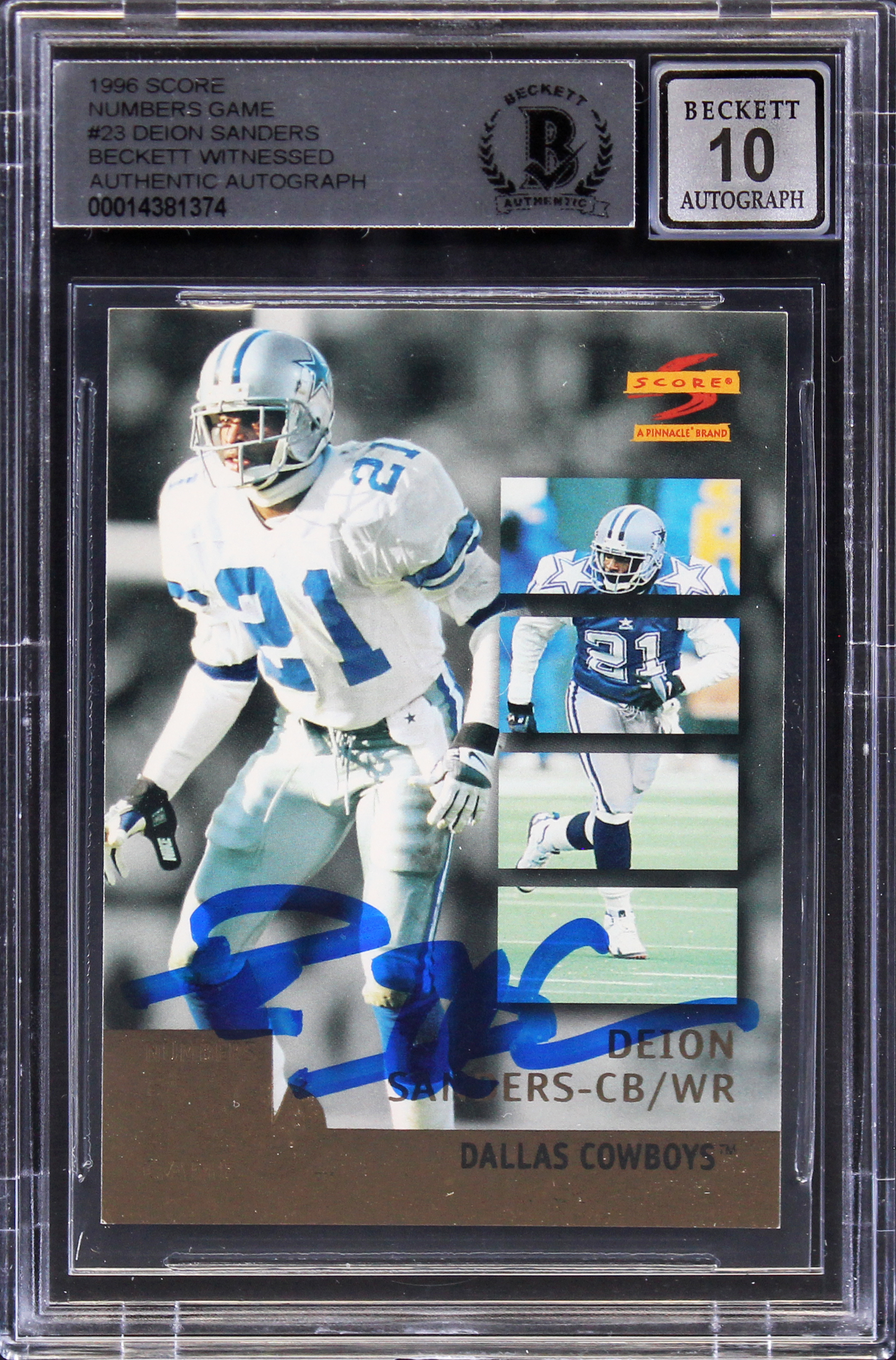 Cowboys Deion Sanders Signed 1996 Score Numbers Game #23 Card Auto 10! BAS Slab