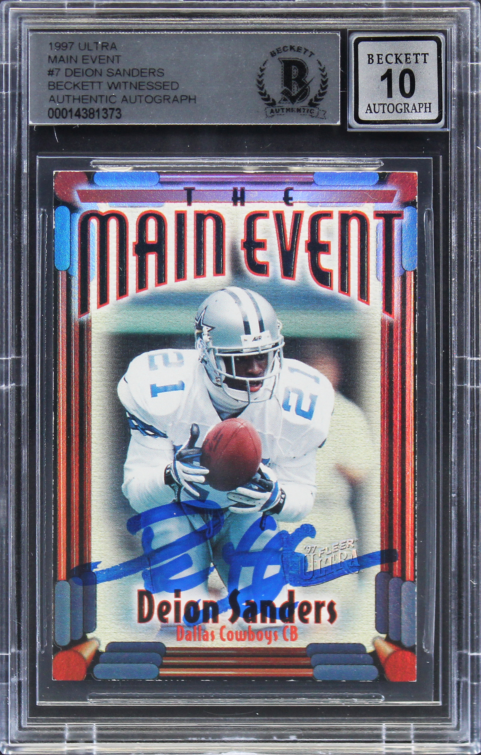 Cowboys Deion Sanders Signed 1997 Ultra Main Event #7 Card Auto 10! BAS Slabbed