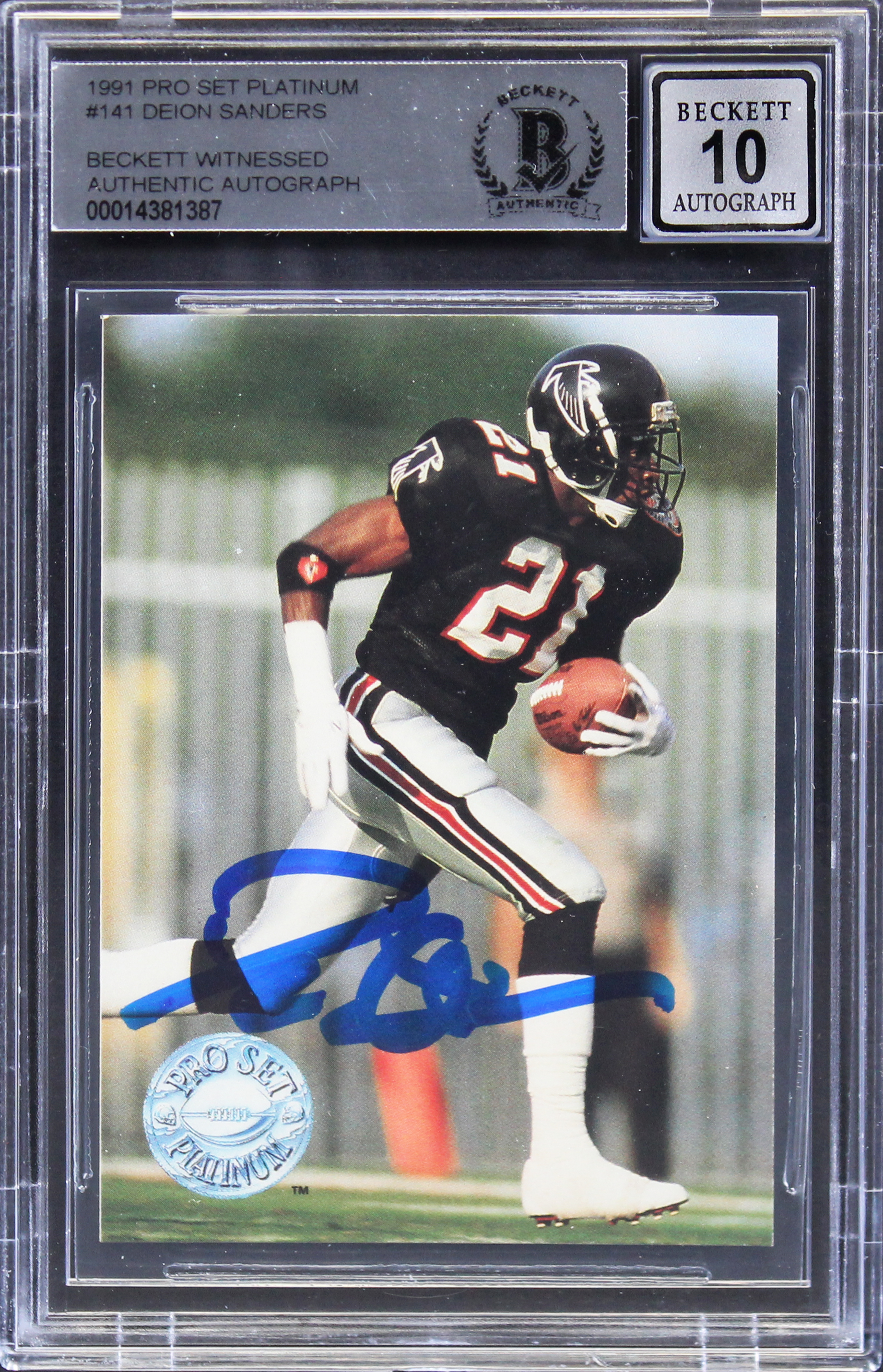 Falcons Deion Sanders Signed 1991 Pro Set Platinum #141 Card Auto 10 BAS Slabbed