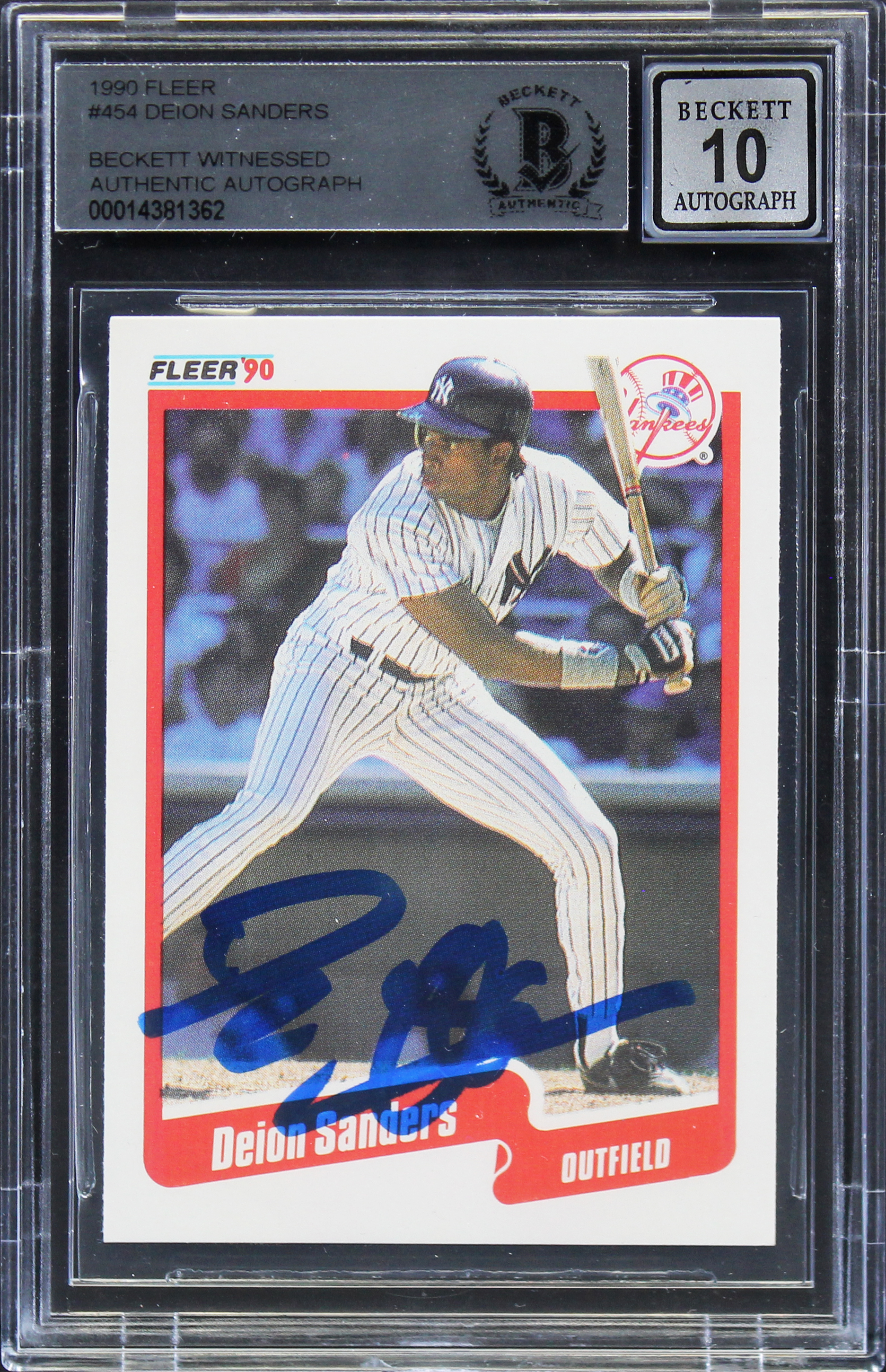 Yankees Deion Sanders Authentic Signed 1990 Fleer #454 Card Auto 10! BAS Slabbed