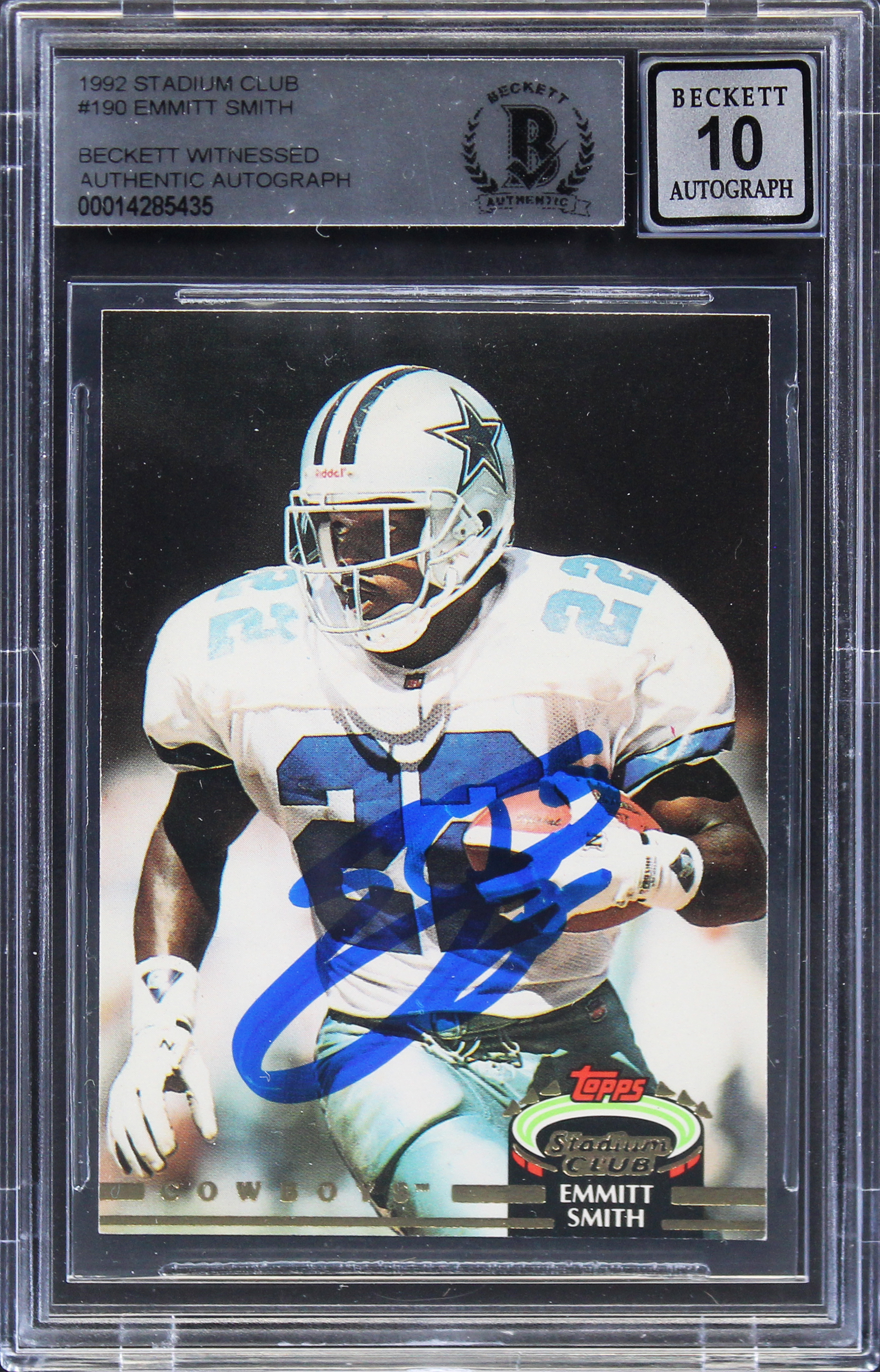 Cowboys Emmitt Smith Signed 1992 Stadium Club #190 Card Auto 10! BAS Slabbed