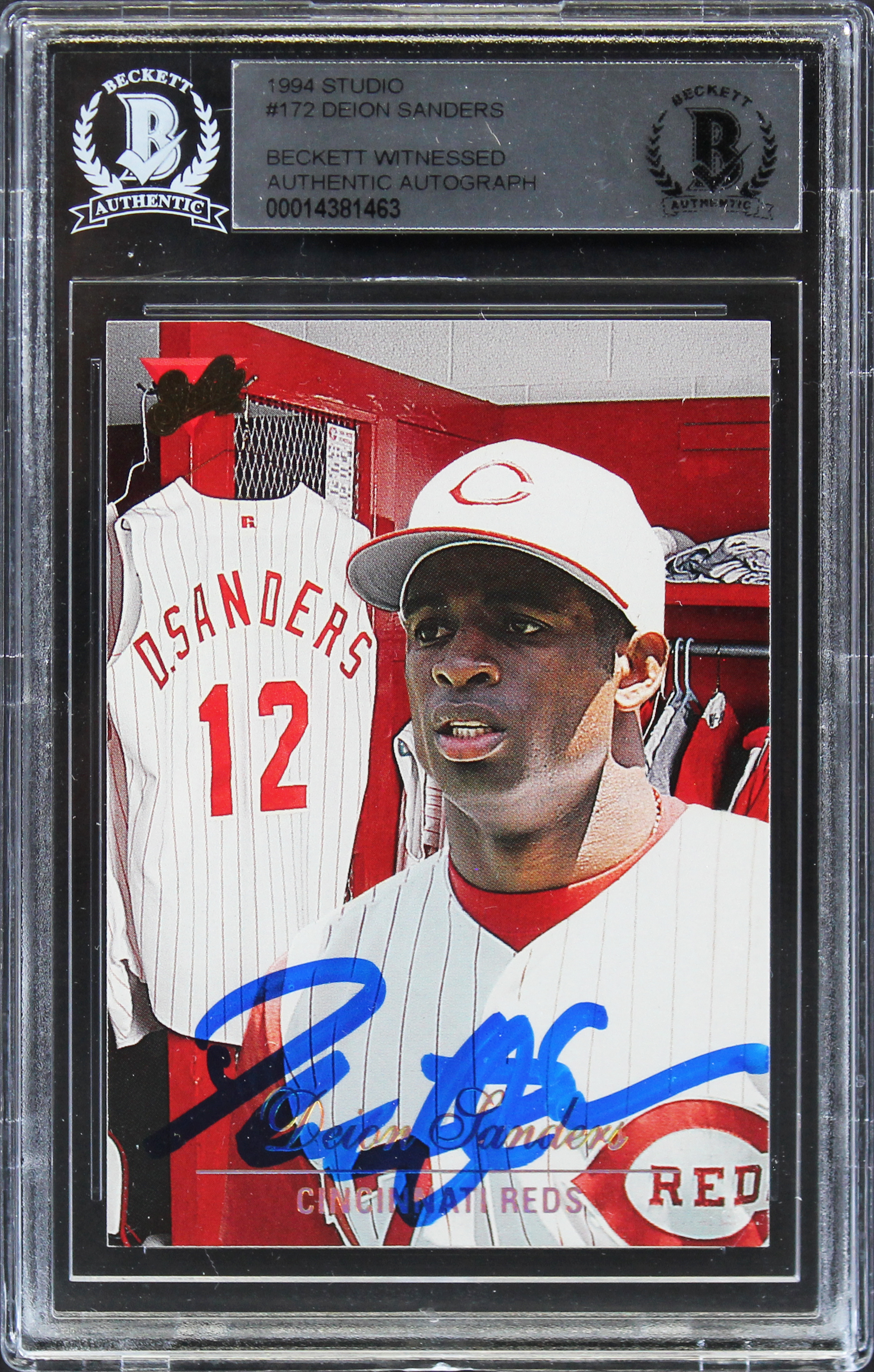 Reds Deion Sanders Authentic Signed 1994 Studio #172 Card BAS Slabbed