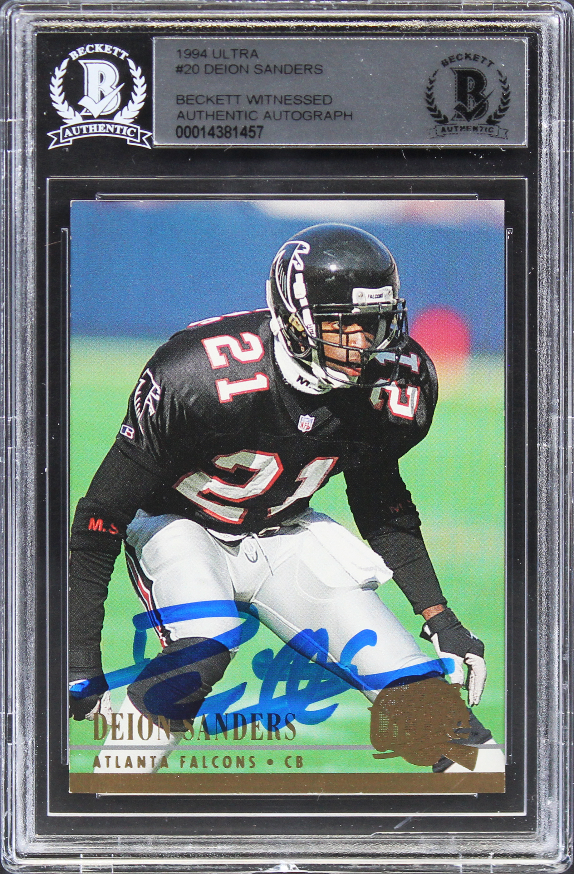 Falcons Deion Sanders Authentic Signed 1994 Ultra #20 Card BAS Slabbed