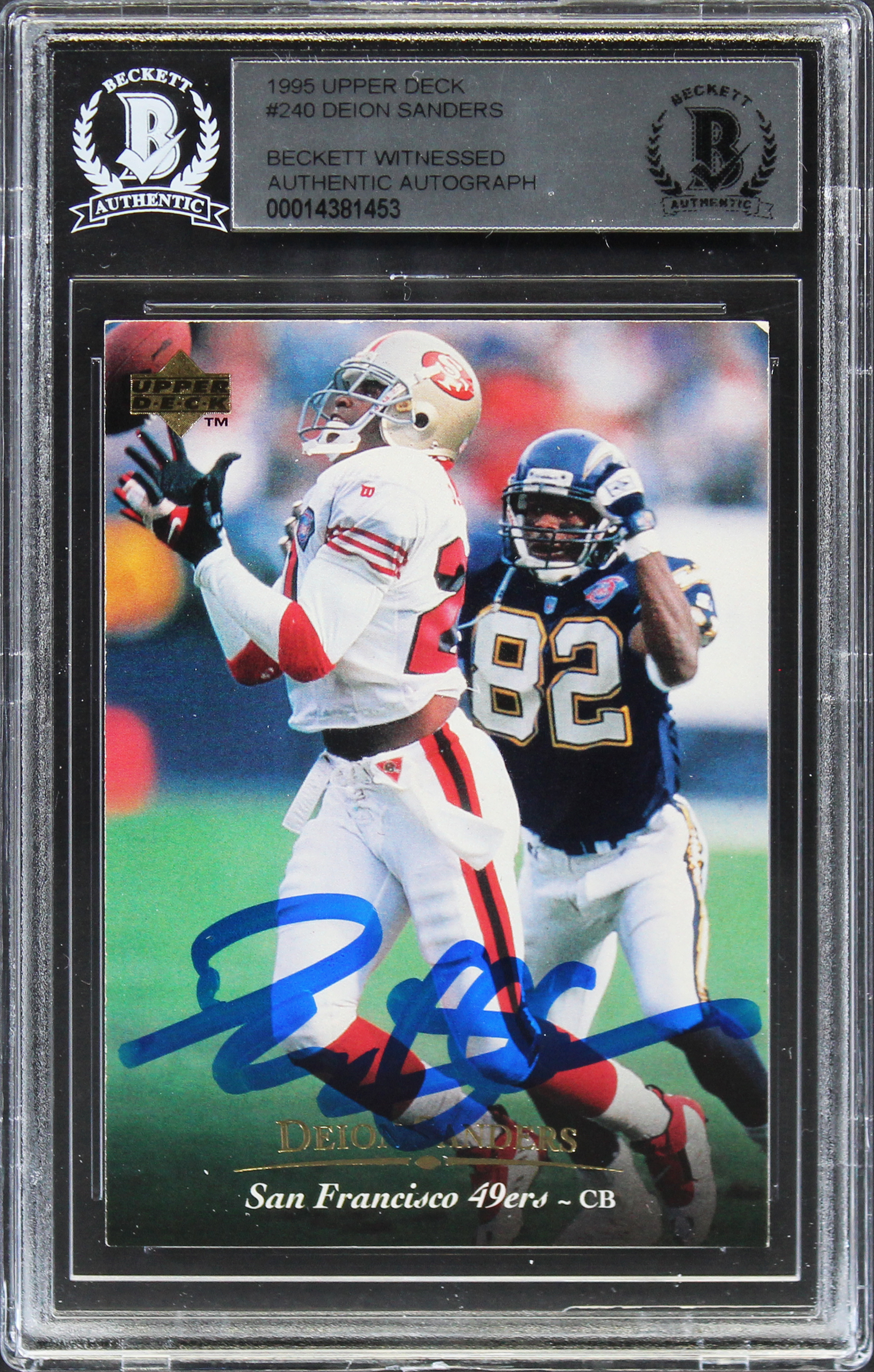 49ers Deion Sanders Authentic Signed 1995 Upper Deck #240 Card BAS Slabbed