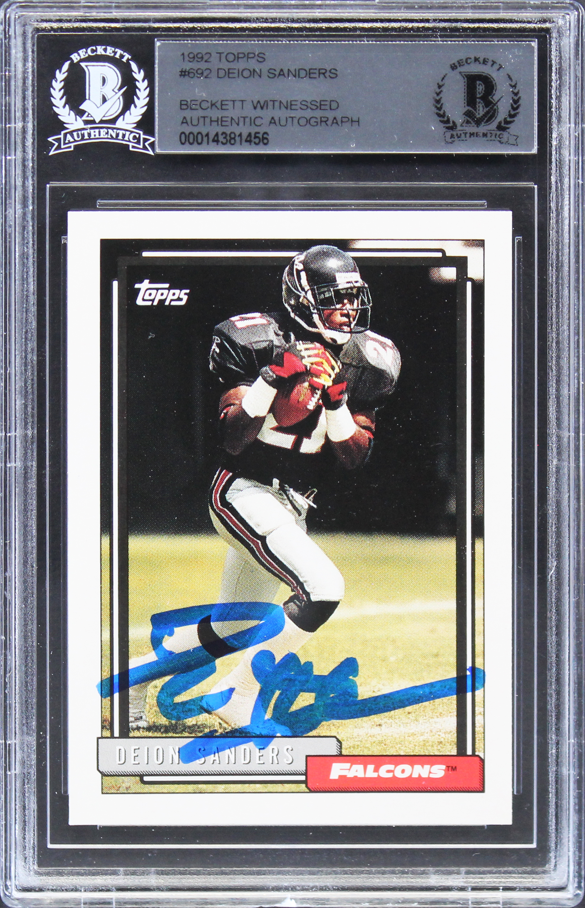 Falcons Deion Sanders Authentic Signed 1992 Topps #692 Card BAS Slabbed