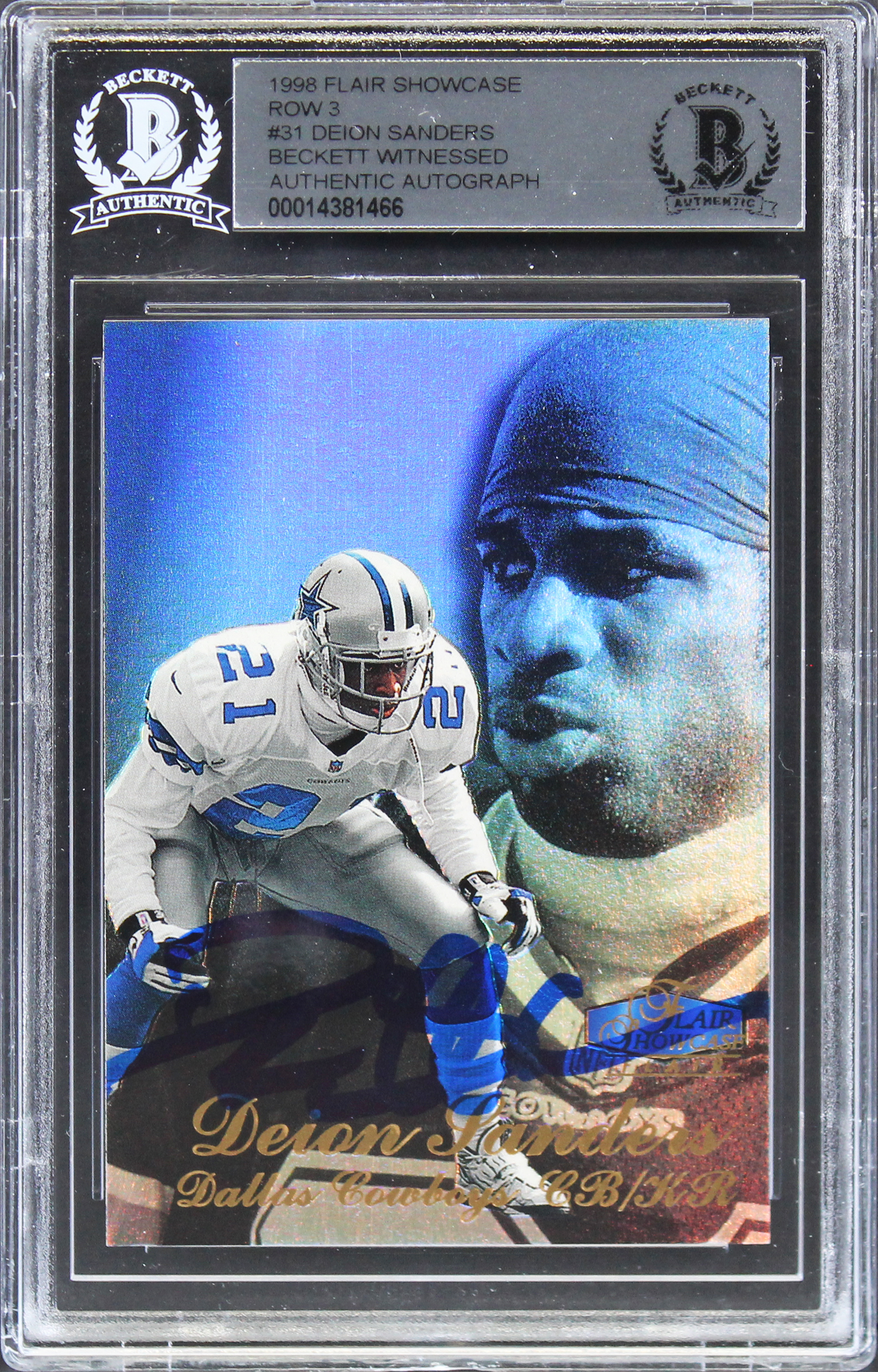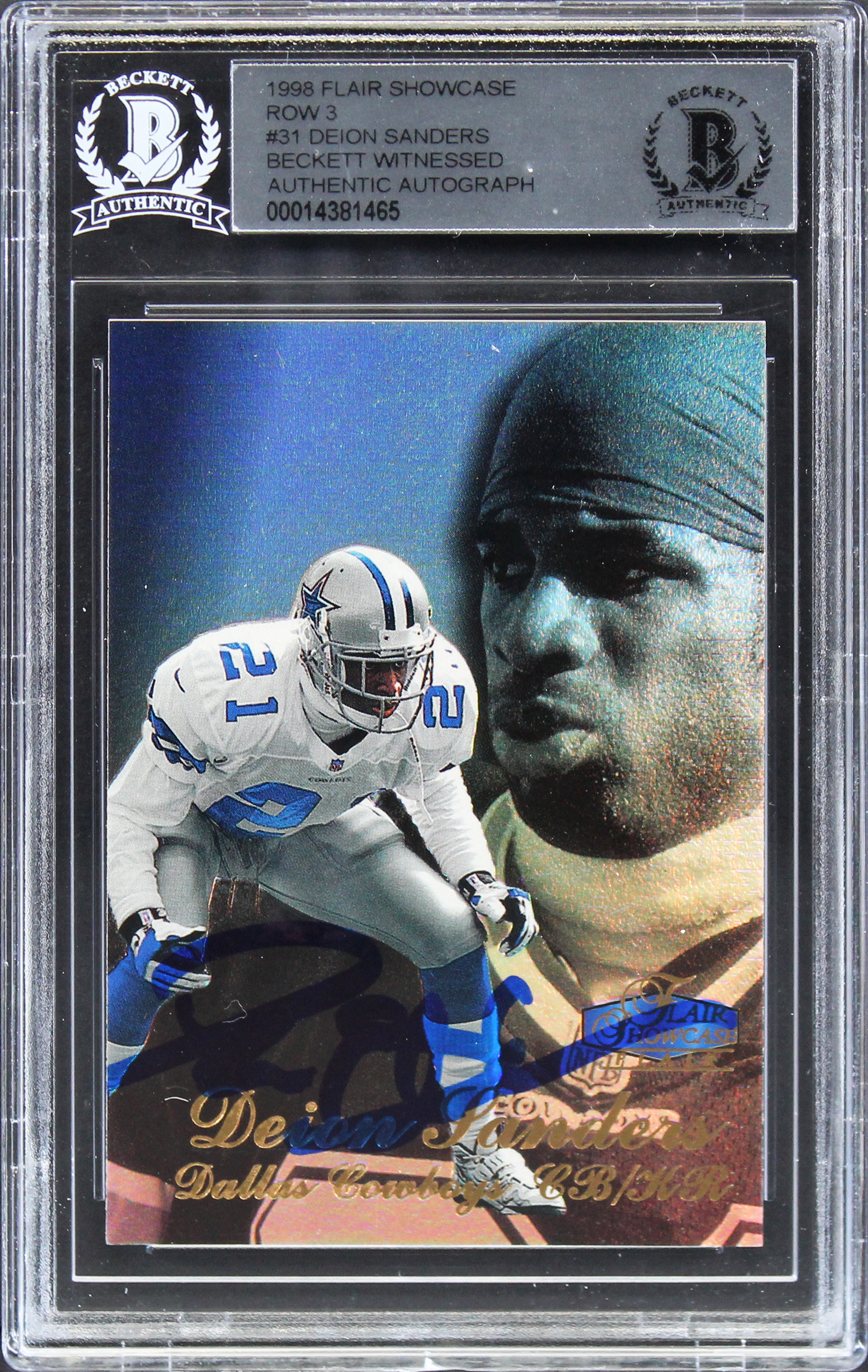 Cowboys Deion Sanders Signed 1998 Flair Showcase Row 3 #31 Card BAS Slabbed 3