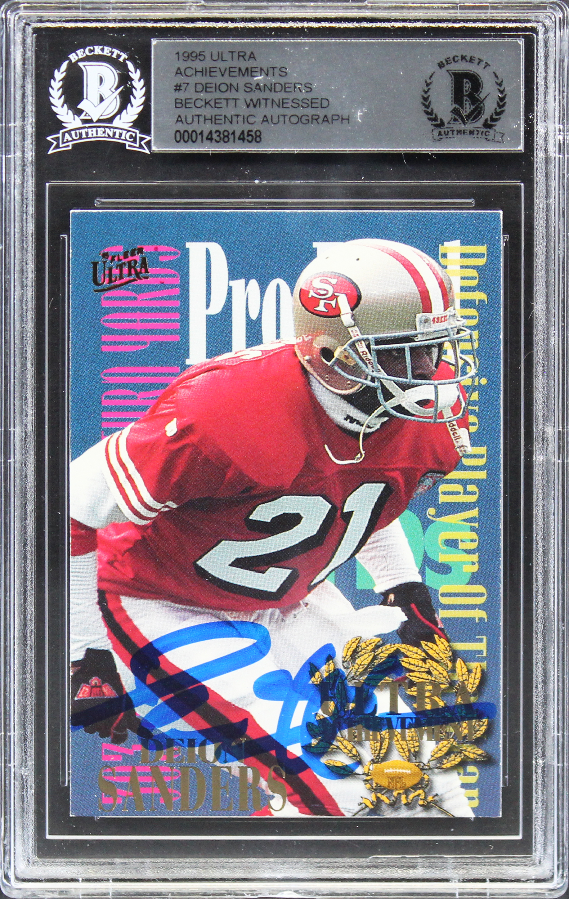 49ers Deion Sanders Authentic Signed 1995 Ultra Achievements #7 Card BAS Slabbed