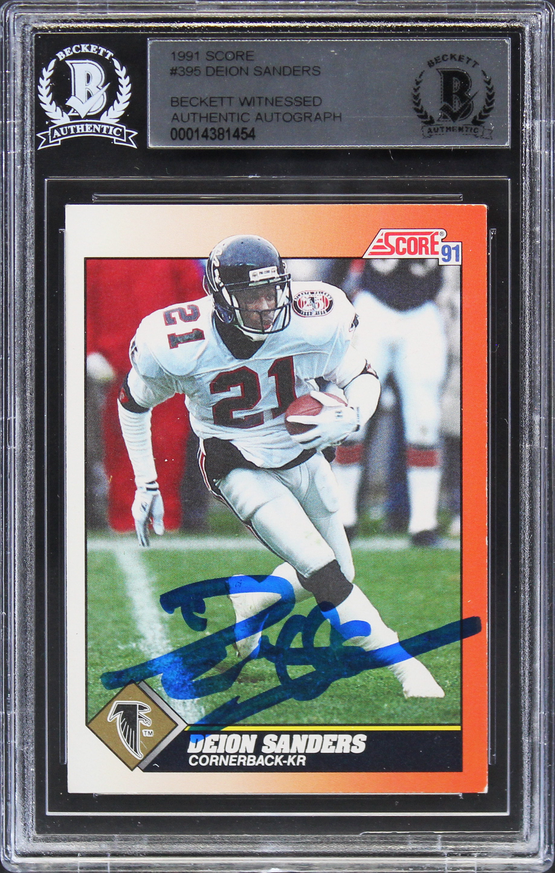 Falcons Deion Sanders Authentic Signed 1991 Score #395 Card BAS Slabbed
