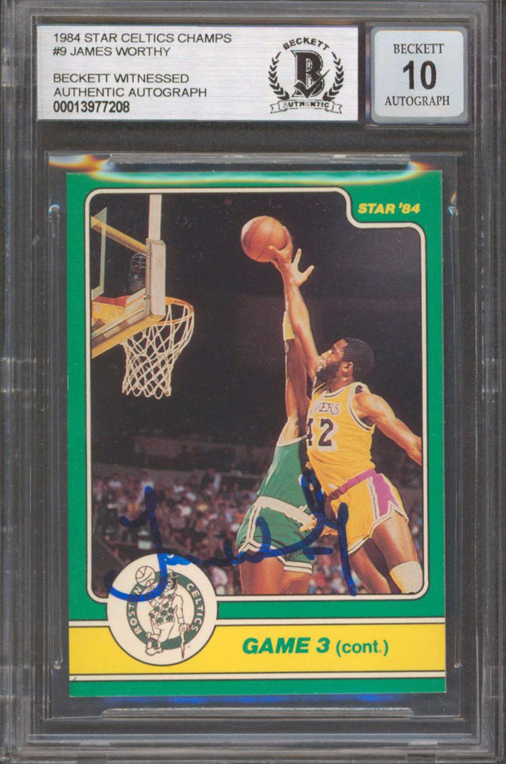 Lakers James Worthy Signed 1984 Star Celtics Champs #9 Card Auto 10! BAS Slabbed
