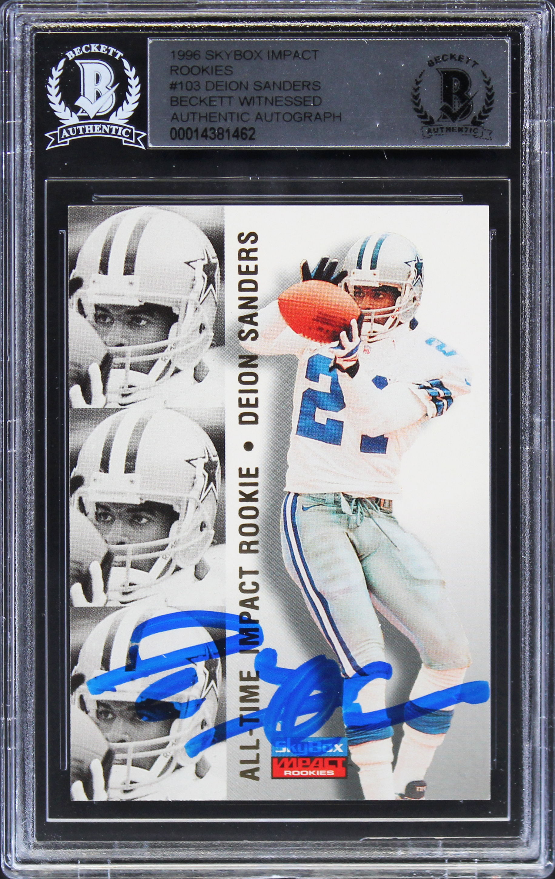 Cowboys Deion Sanders Signed 1996 Skybox Impact Rookies #103 Card BAS Slabbed