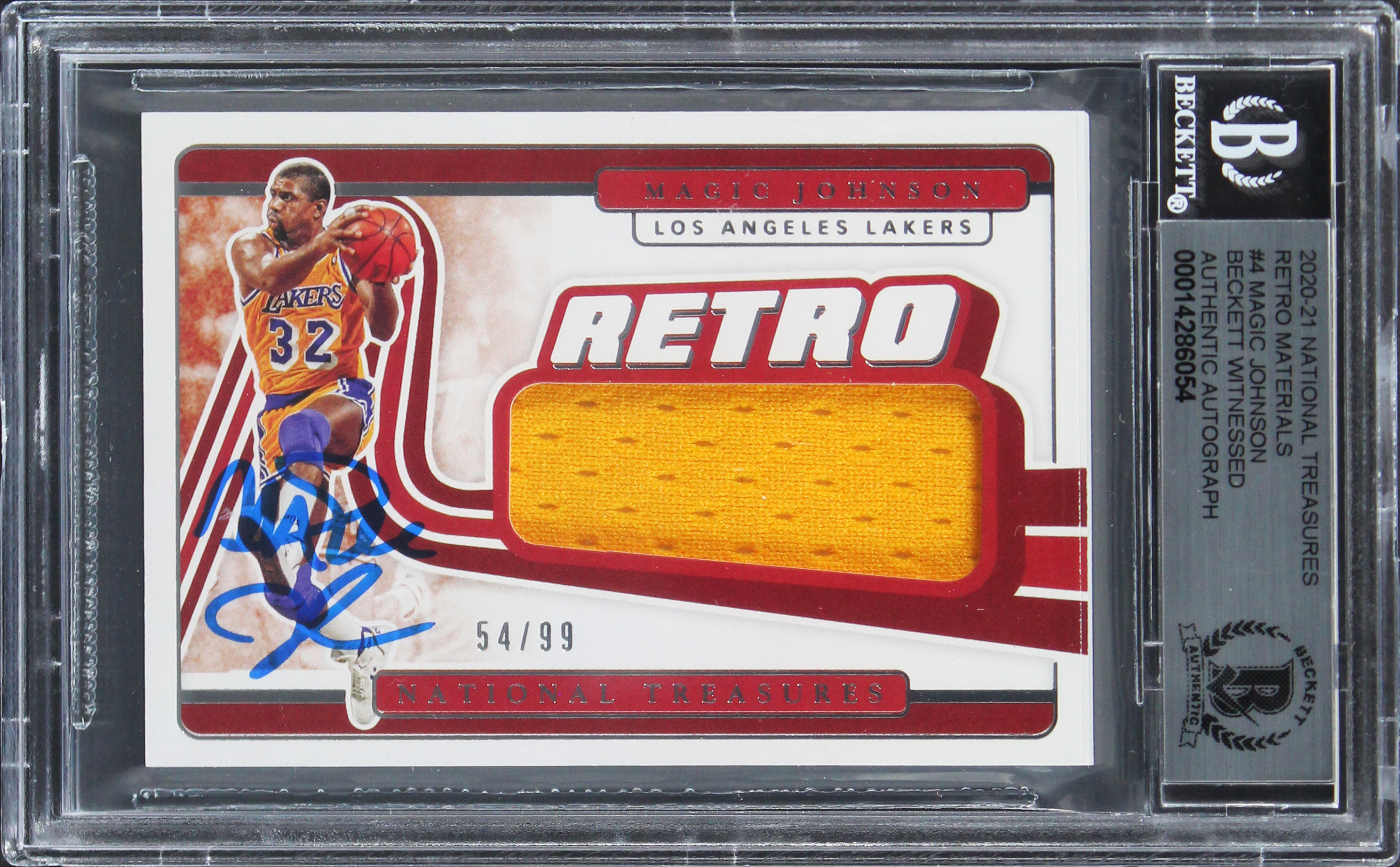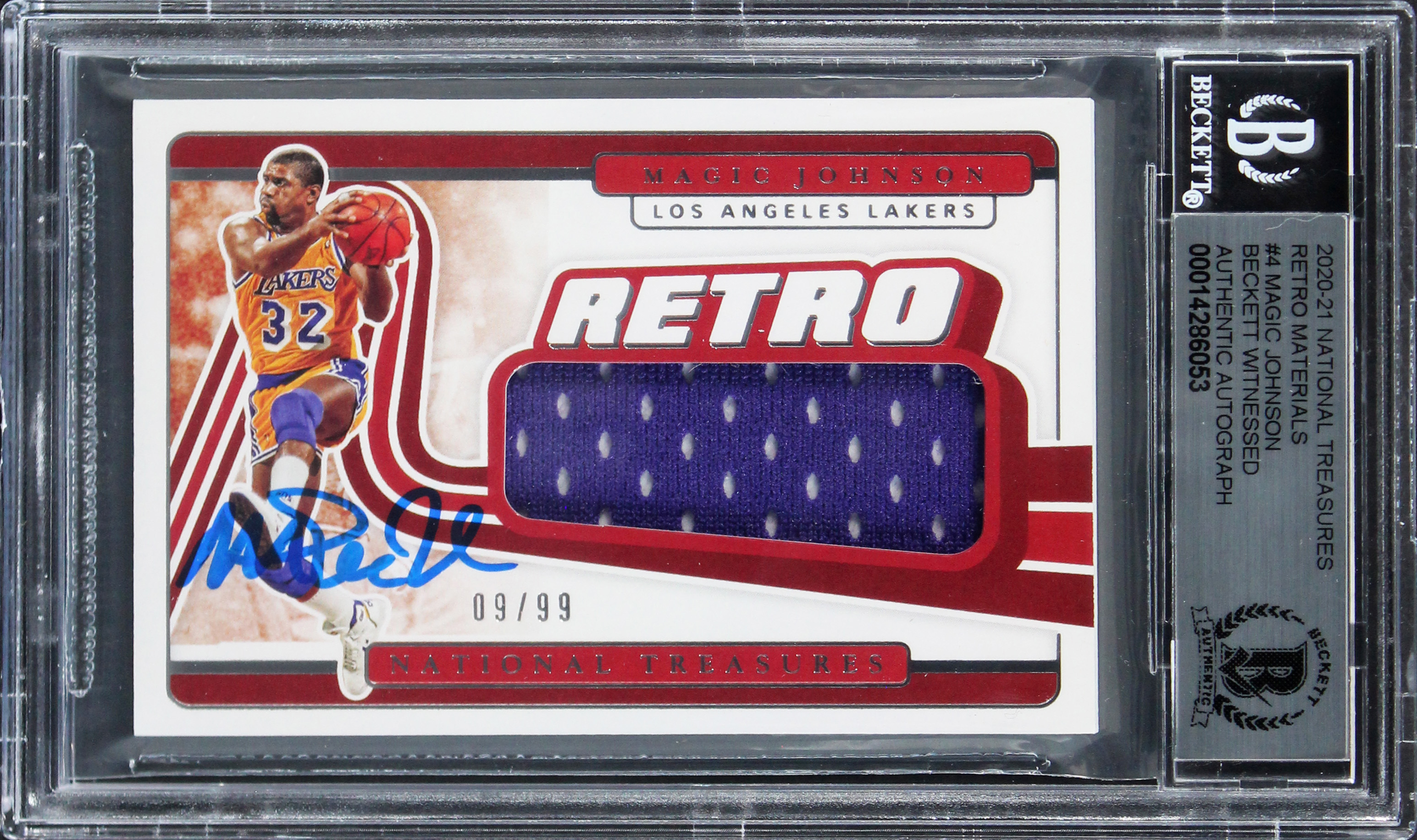 Magic Johnson Signed 2020 National Treasures Retro #4 Card Auto 10! BAS Slab 1