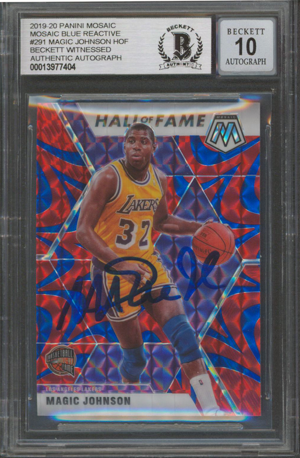 Lakers Magic Johnson Signed 2019 Panini Mosaic BR #291 Card Auto 10! BAS Slabbed