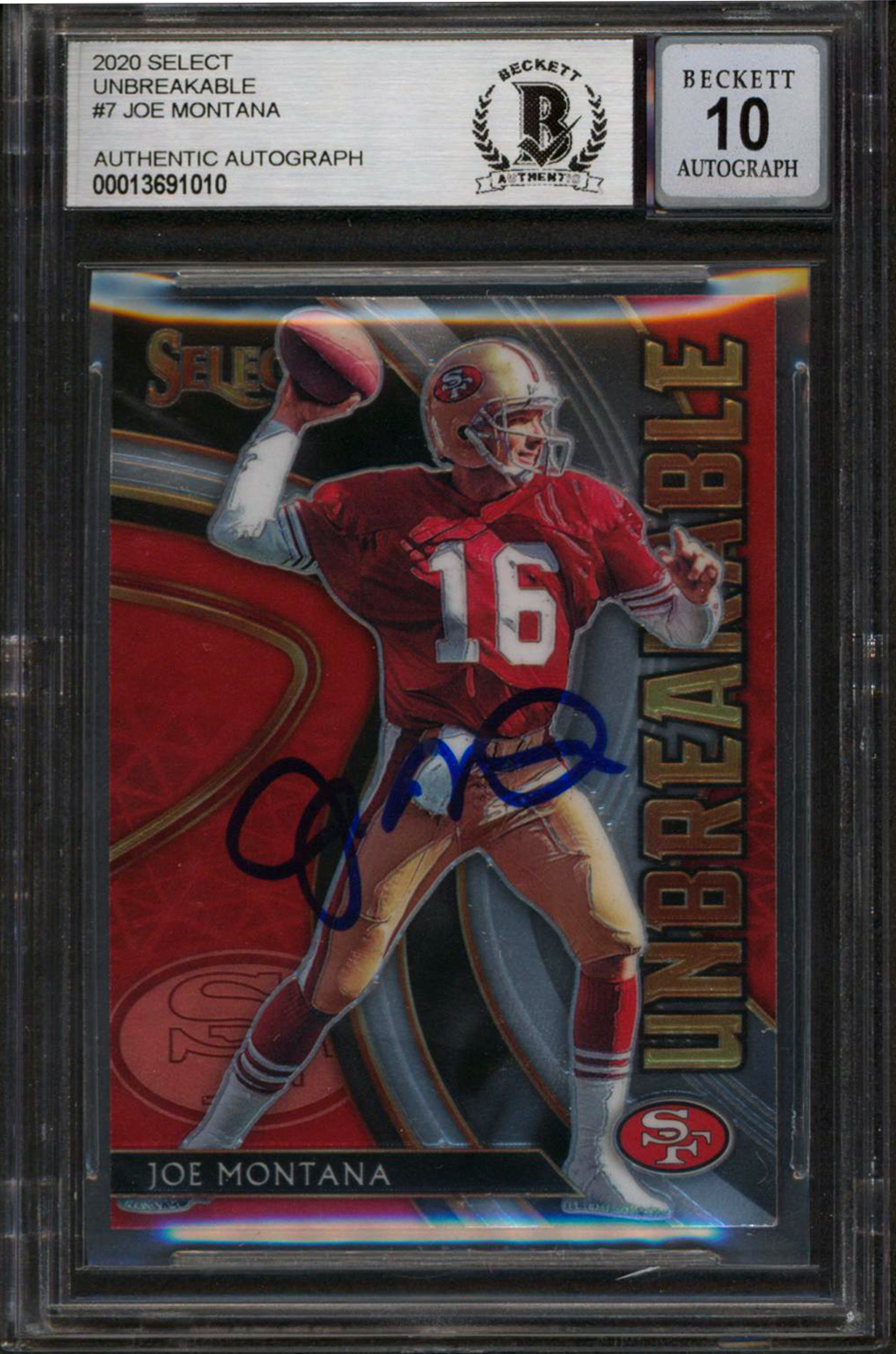 49ers Joe Montana Signed 2020 Select Unbreakable #7 Card Auto Gem 10! BAS Slab