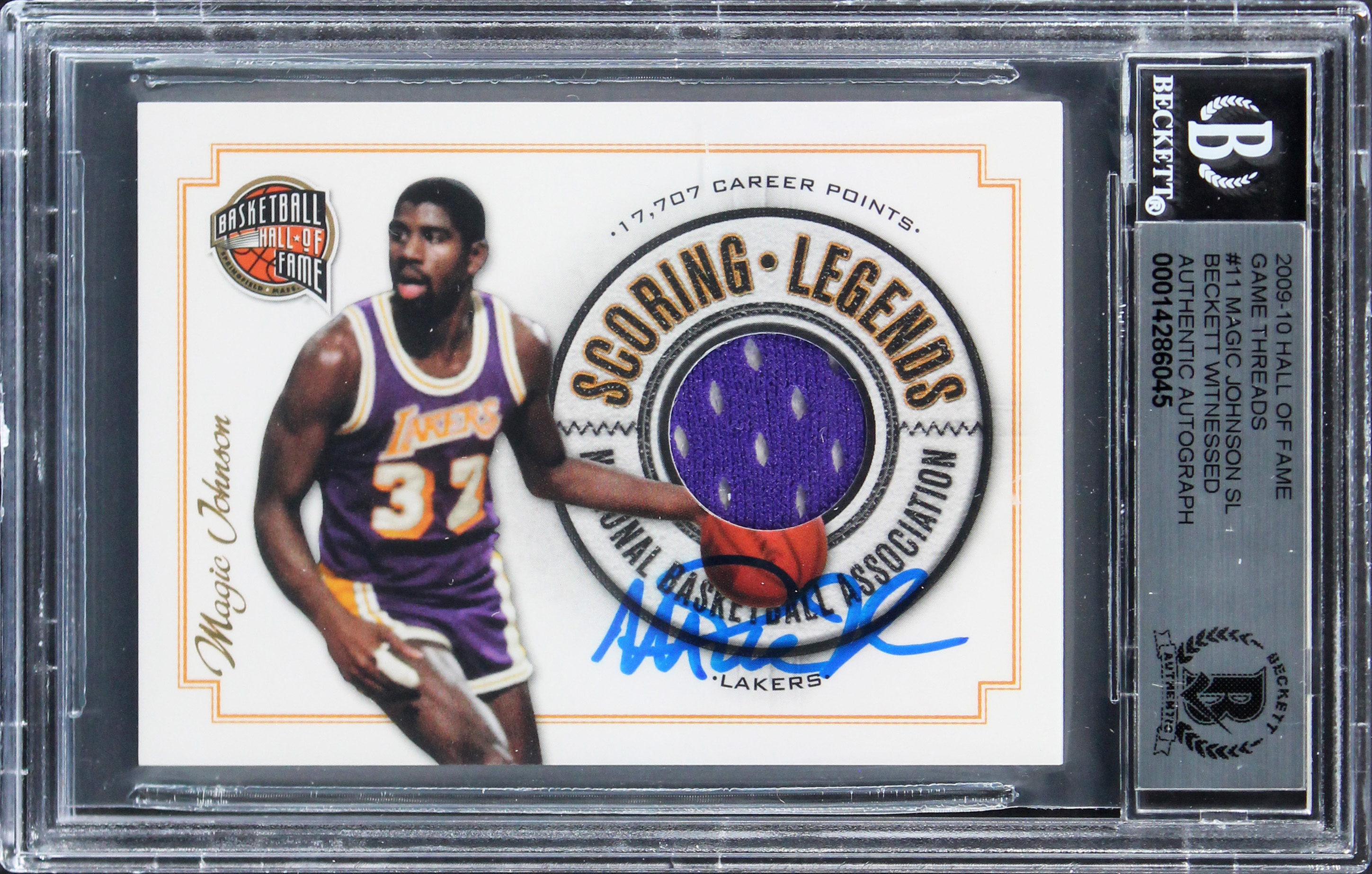 Lakers Magic Johnson Signed 2009 HOF Game Threads #11 Card Auto 10! BAS Slabbed