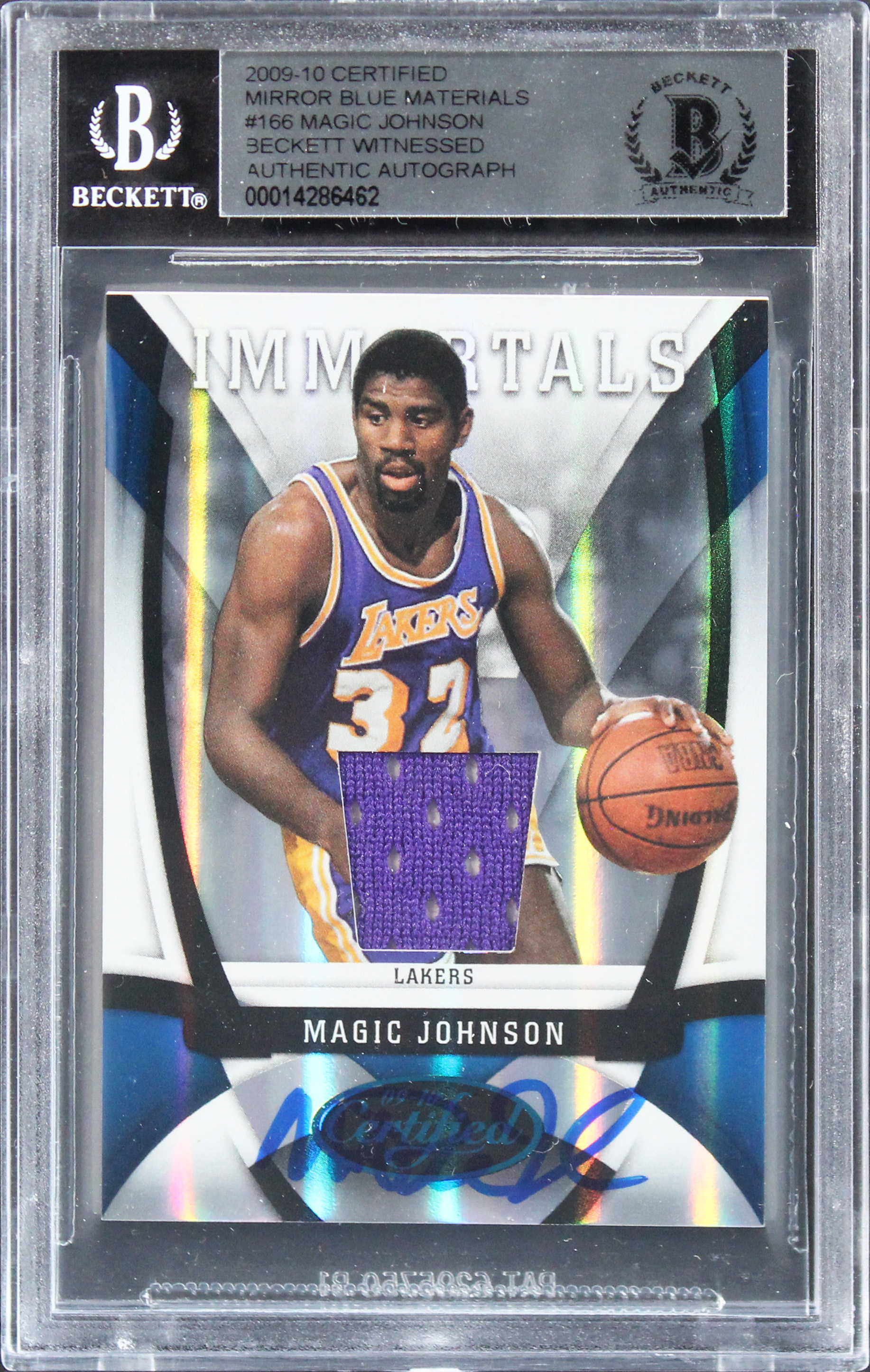 Magic Johnson Signed 2009 Certified Mirror Blue #166 19/50 Card Auto 10 BAS Slab