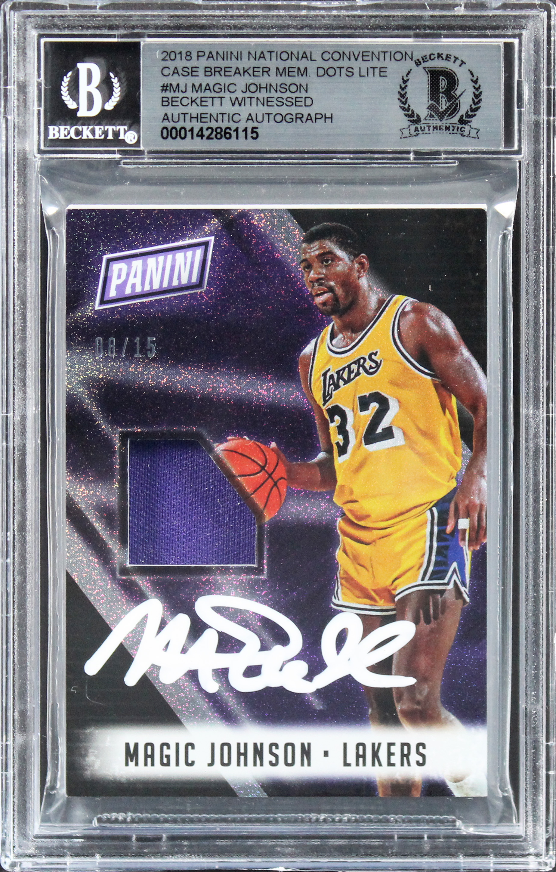 Magic Johnson Signed 2018 Panini National Mem #MJ #8/15 Card Auto 10! BAS Slab