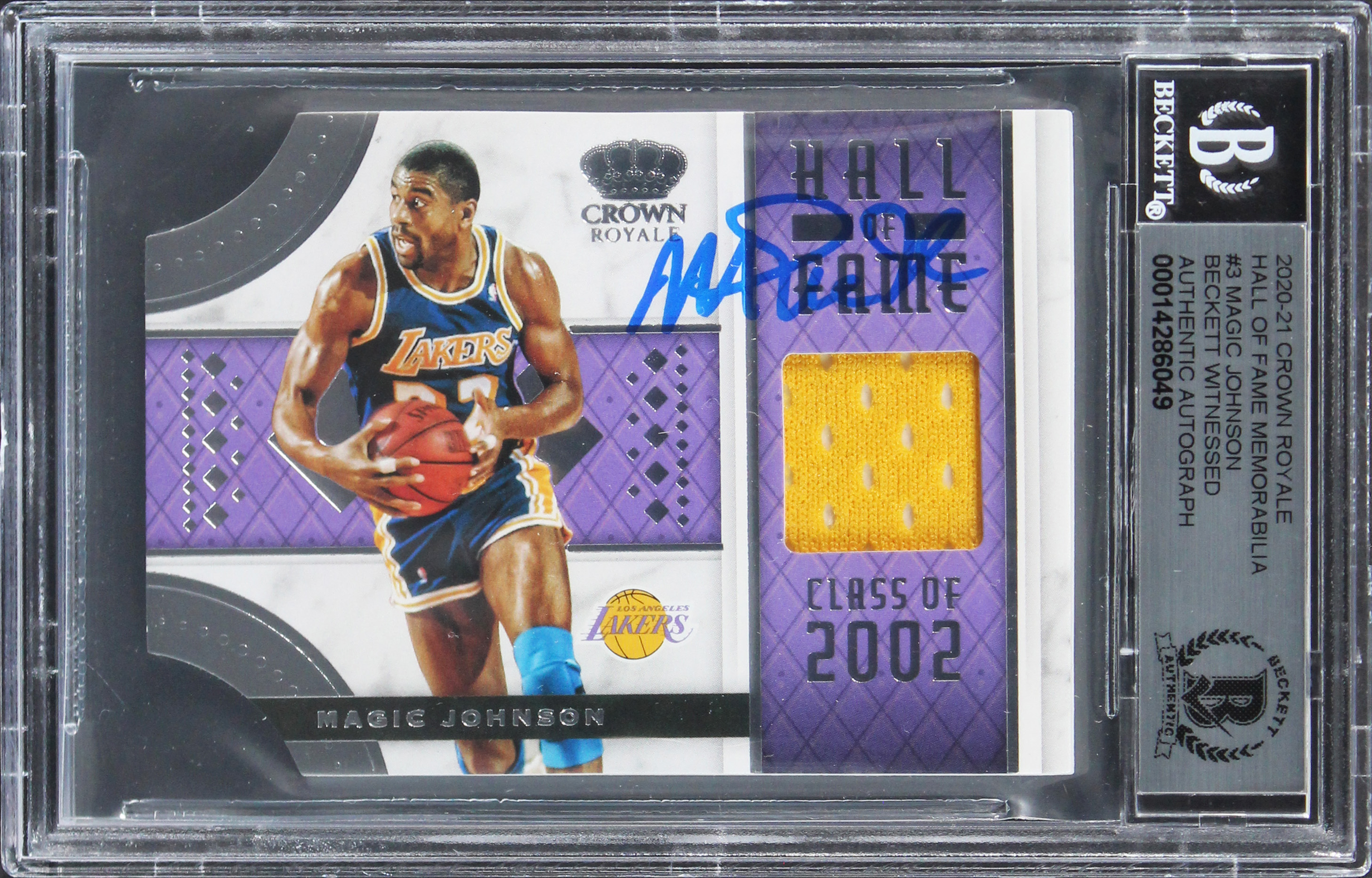 Magic Johnson Signed 2020 Crown Royale HOF Mem #3 Card Auto 10! BAS Slabbed 2