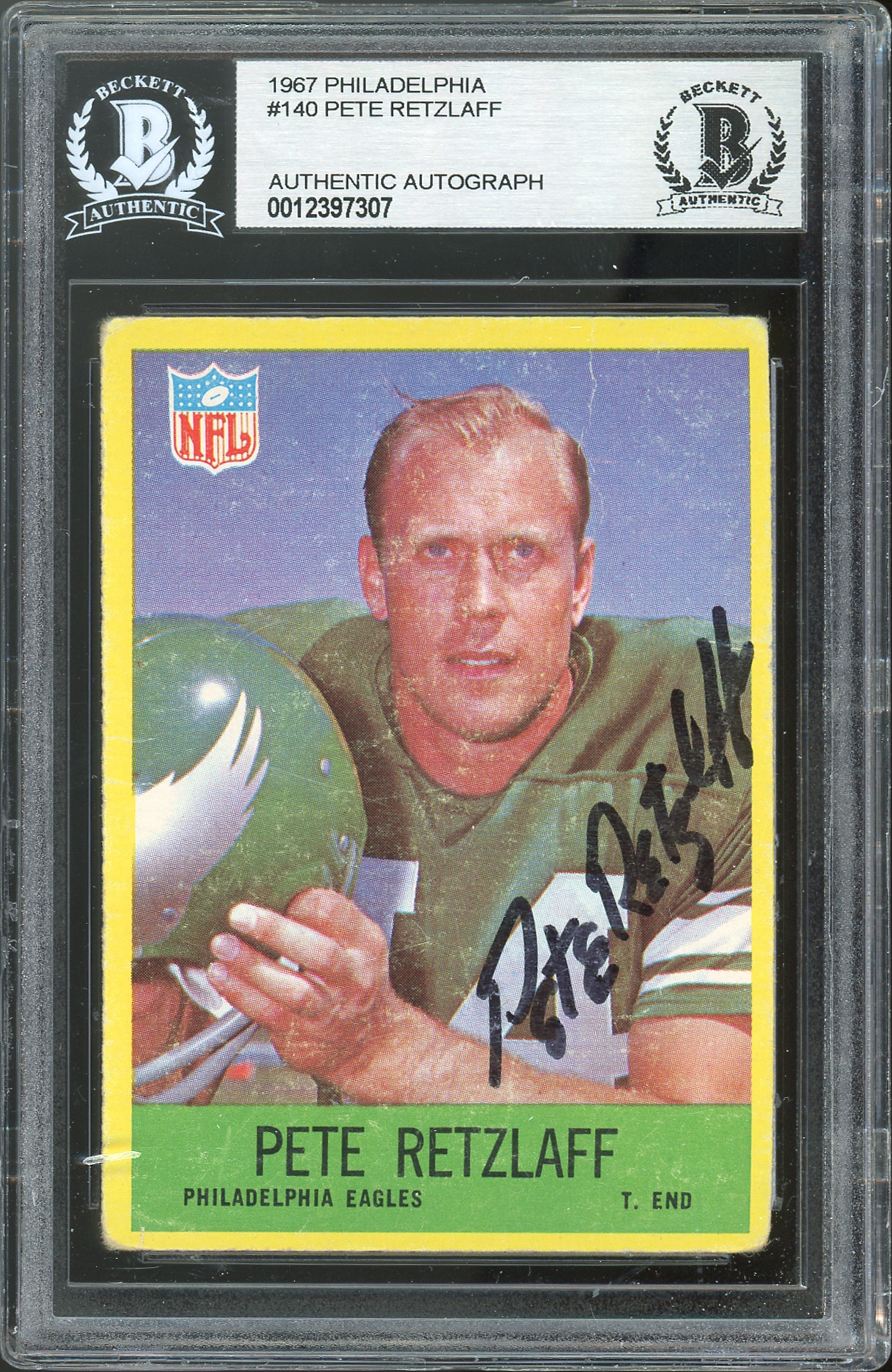 Eagles Pete Retzlaff Fly Eagles Fly Signed 1967 Philadelphia #140 Card BAS Slab