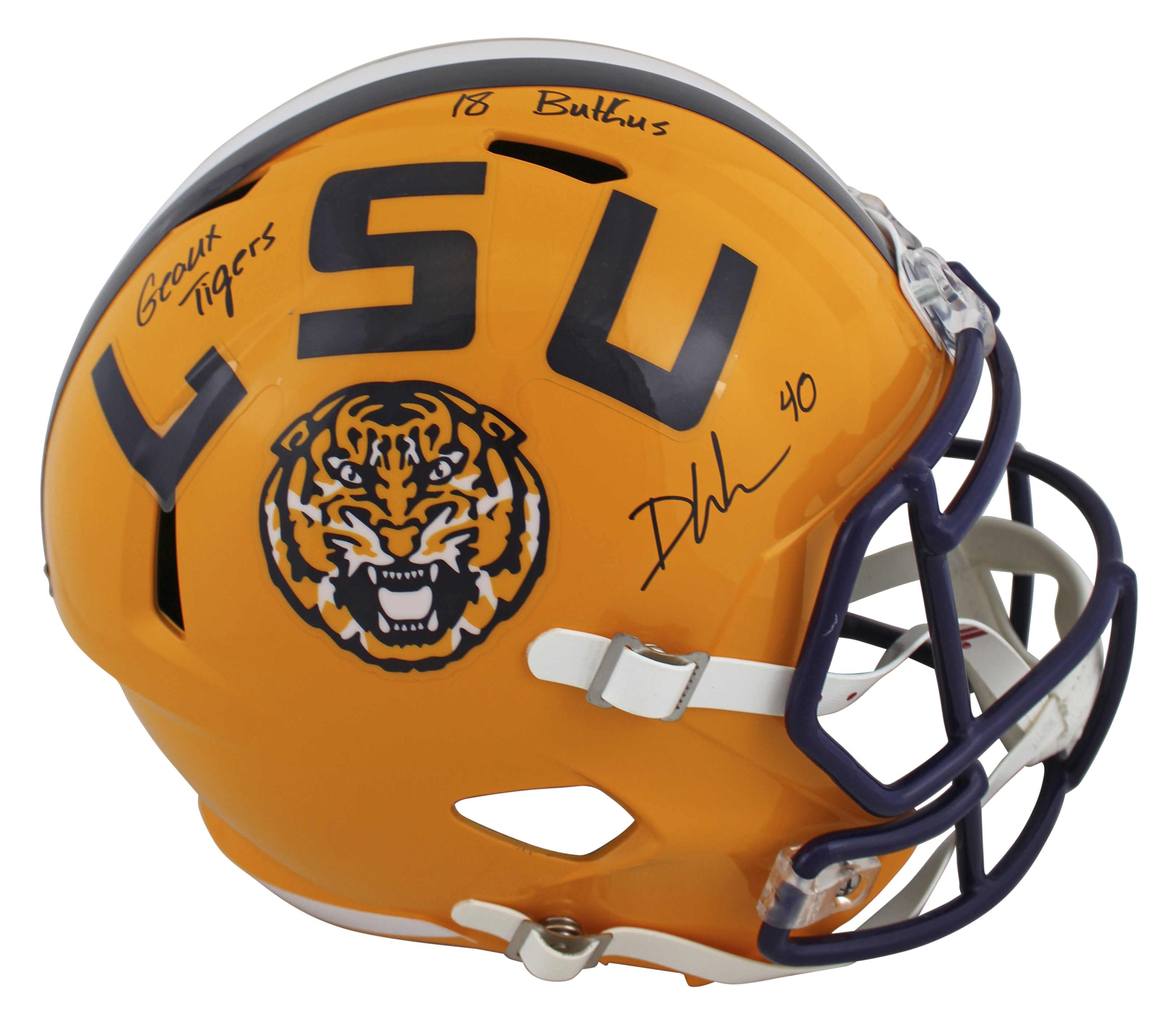 LSU Devin White "2x Insc" Authentic Signed Full Size Speed Rep Helmet BAS Wit