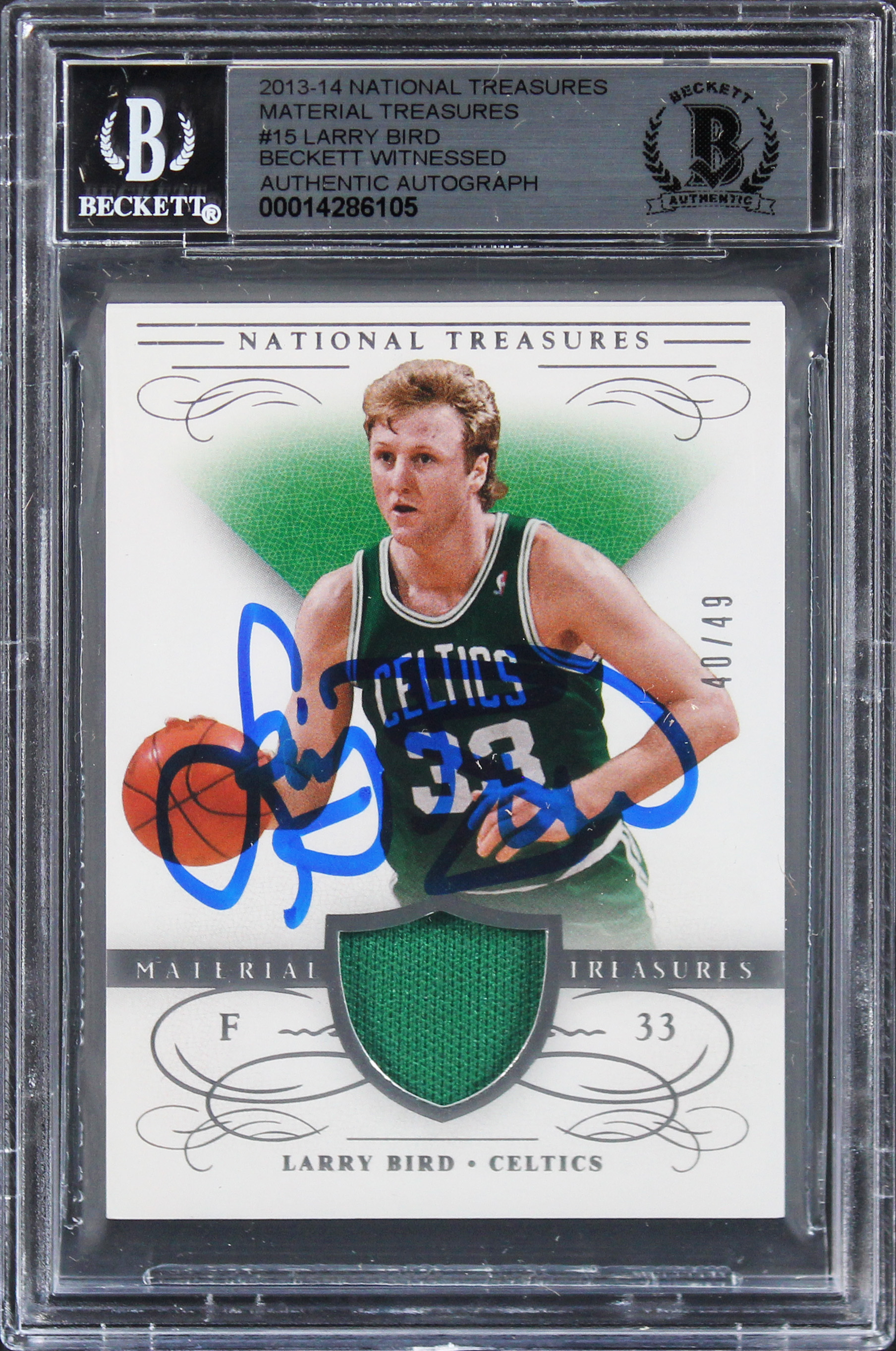 Larry Bird Signed 2013 National Treasures Material #15 Card Auto 10! BAS Slabbed