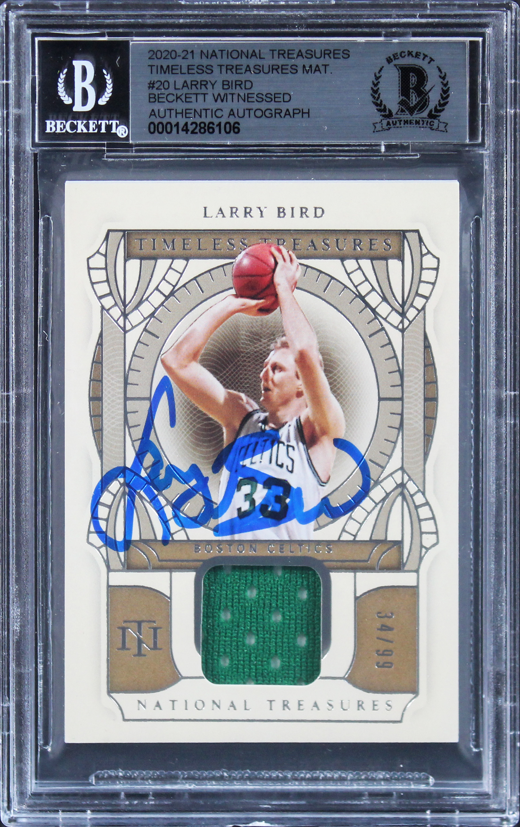 Larry Bird Signed 2020 National Treasures Timeless #20 Card Auto 10! BAS Slab 2