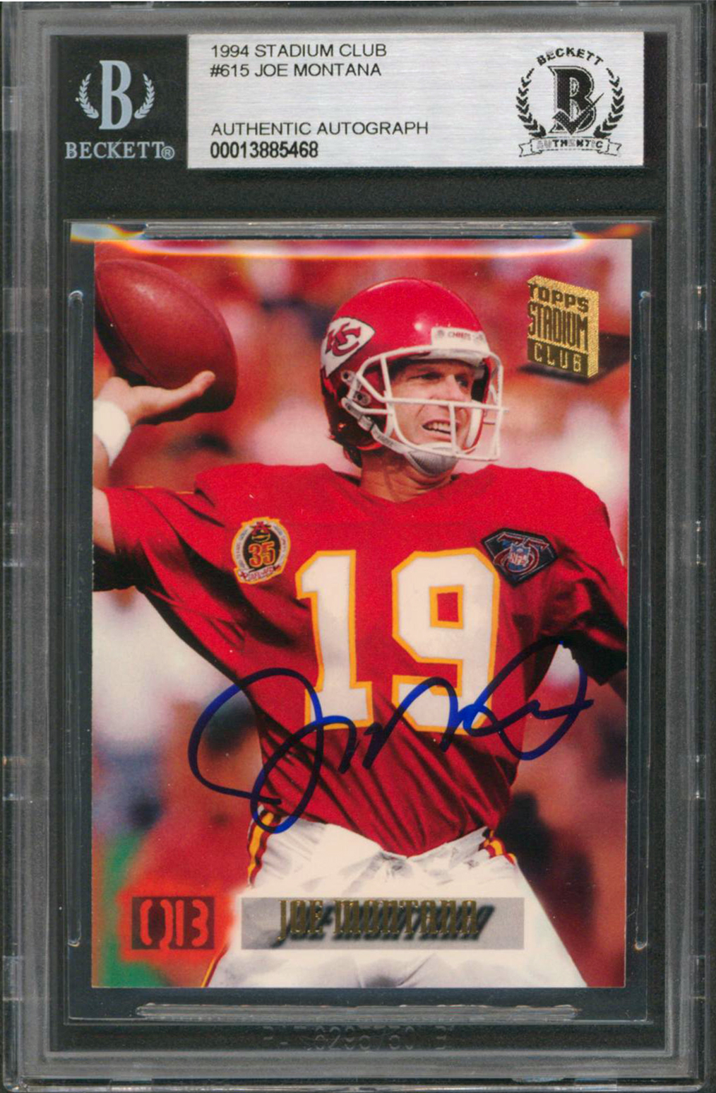 49ers Joe Montana Authentic Signed 1994 Stadium Club #615 Card BAS Slabbed