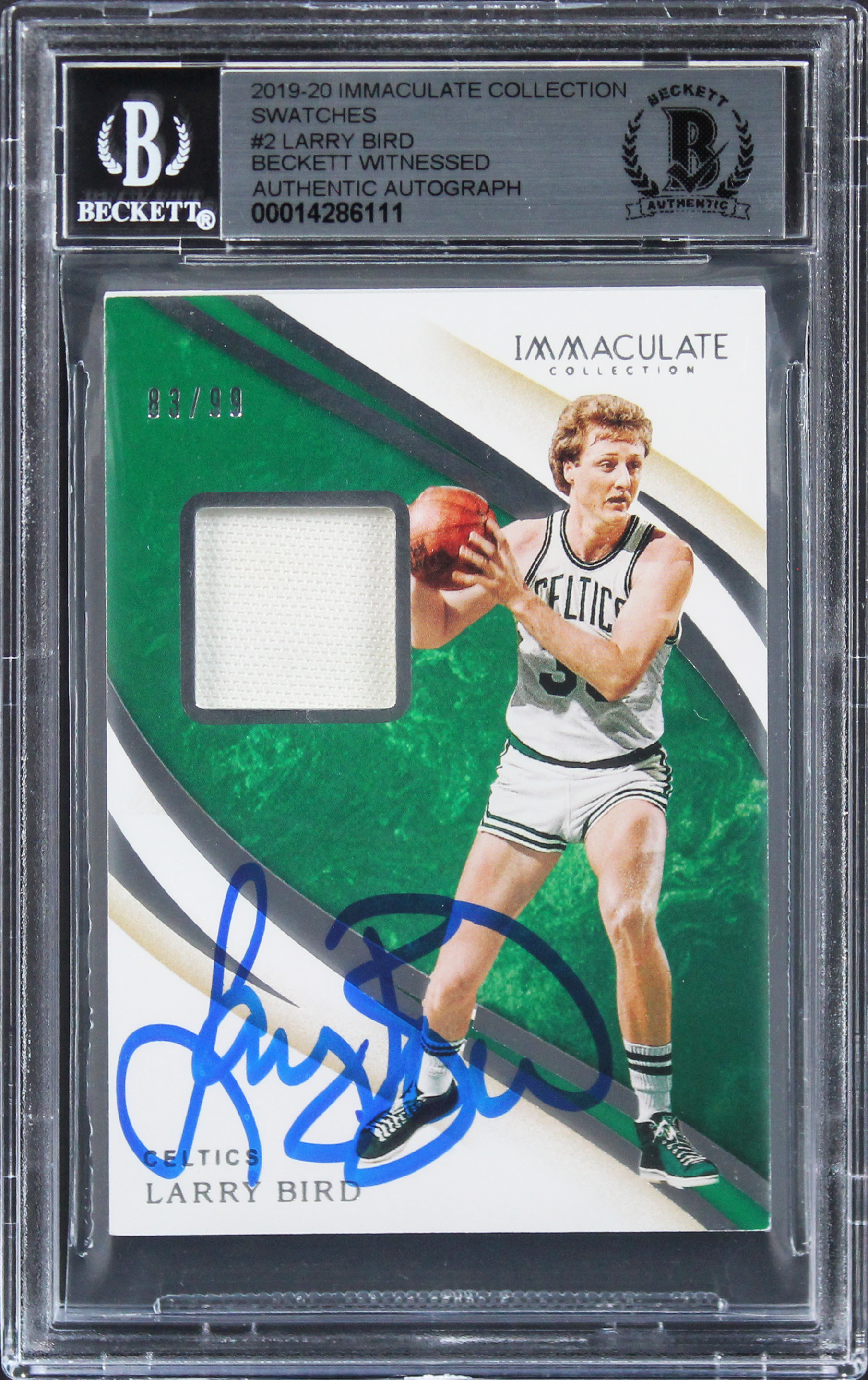 Larry Bird Signed 2019 Immaculate Collection Swatches #2 Card Auto 10! BAS Slab