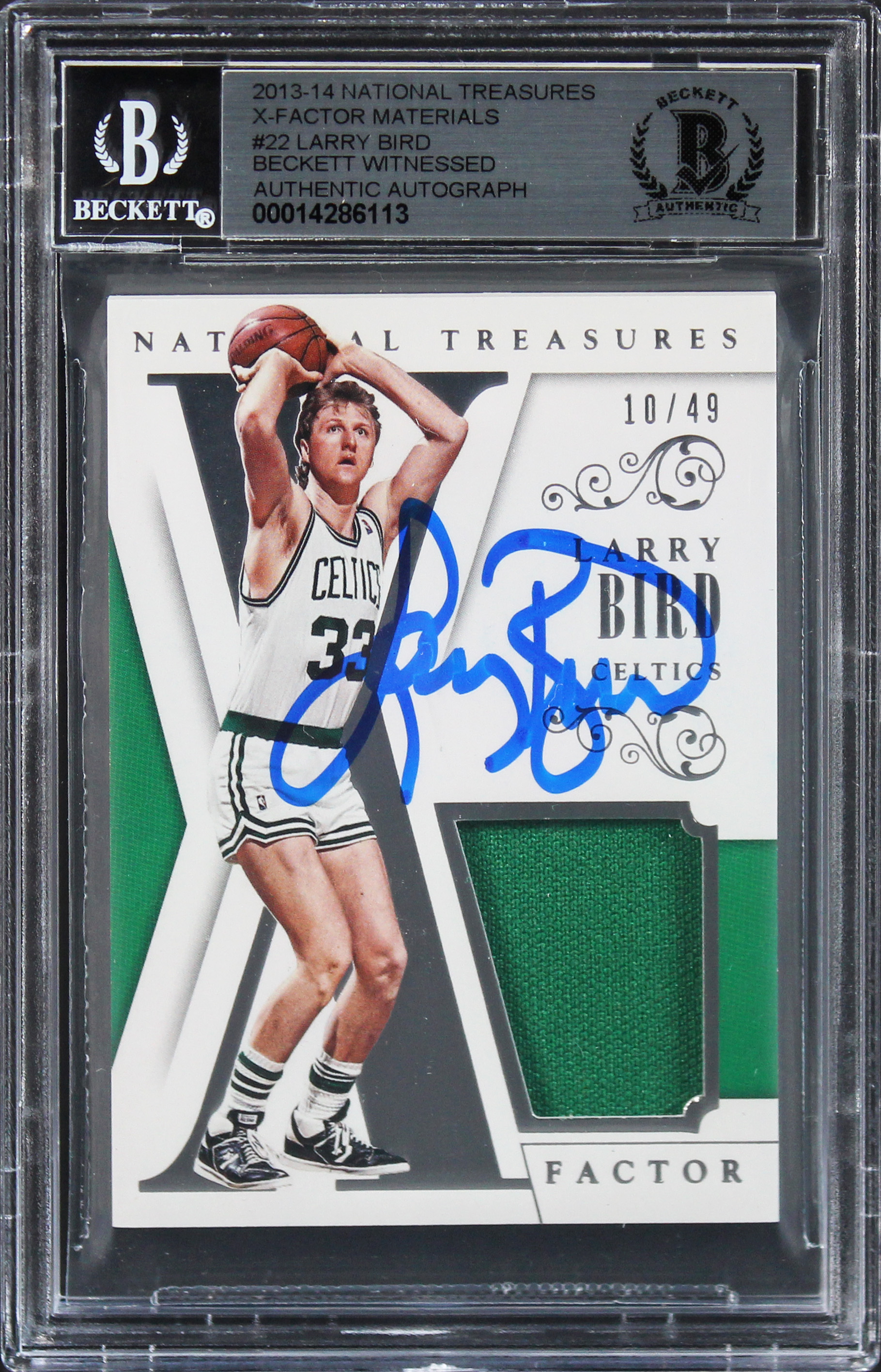 Larry Bird Signed 13 National Treasures XFactor #22 #10/49 Card Auto 10 BAS Slab