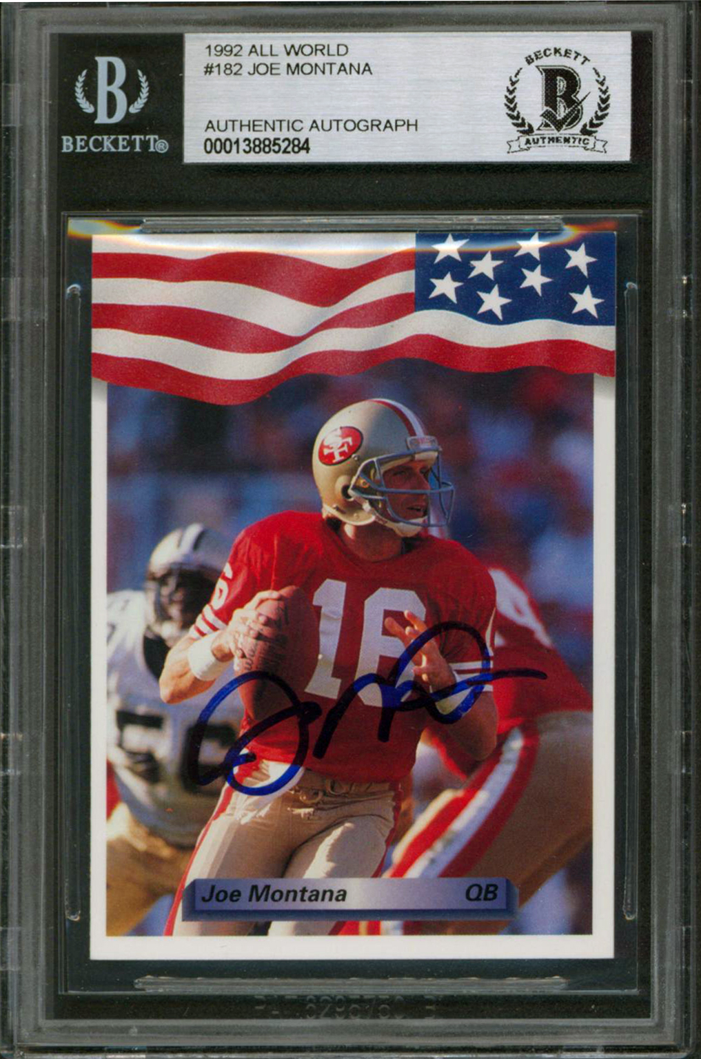 49ers Joe Montana Authentic Signed 1992 All World #182 Card Autographed BAS Slab