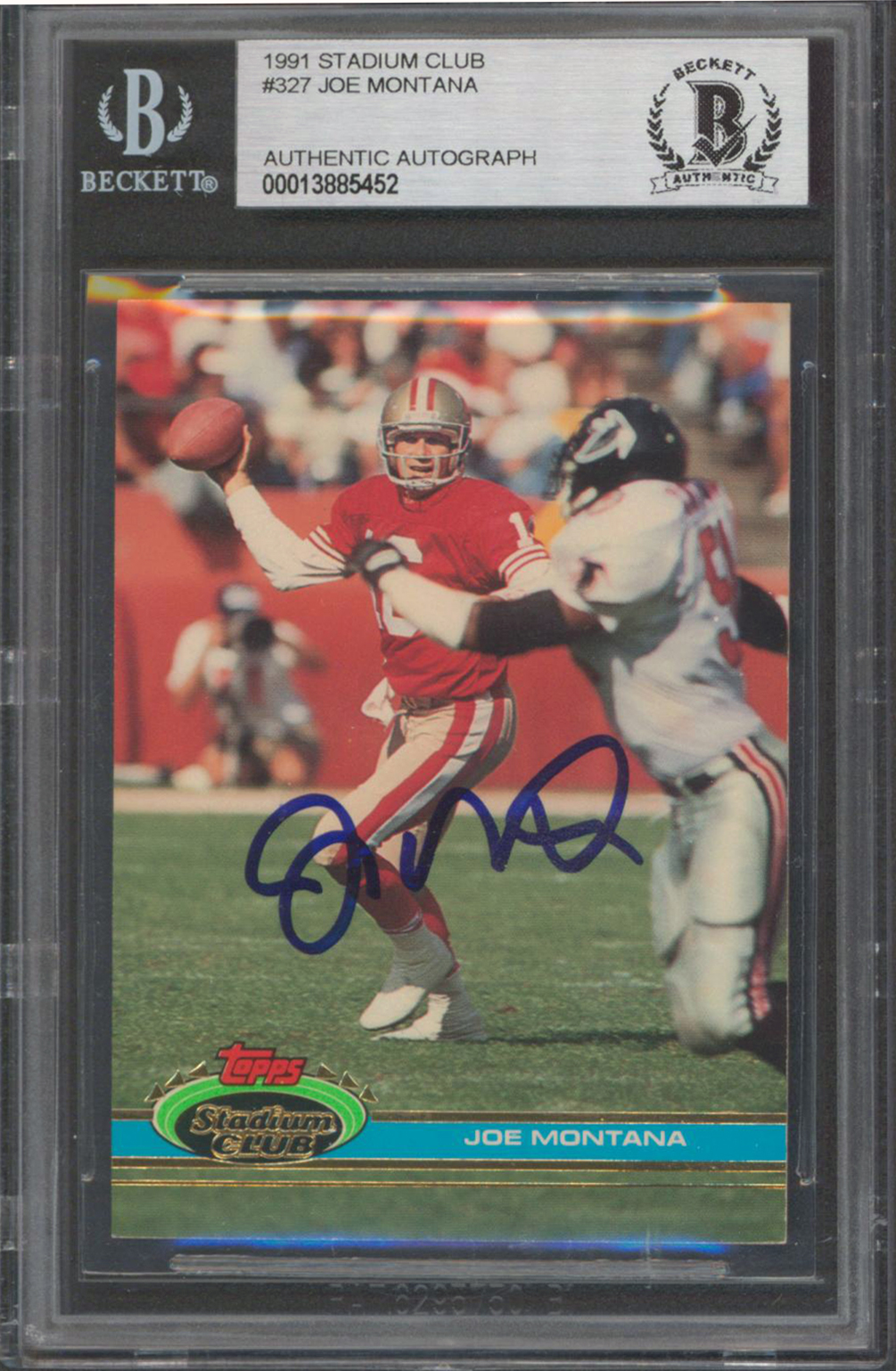 49ers Joe Montana Authentic Signed 1991 Stadium Club #327 Card BAS Slabbed