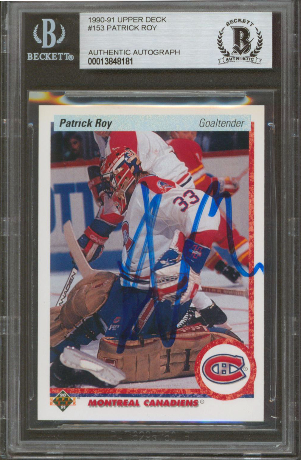 Canadiens Patrick Roy Authentic Signed 1990 Upper Deck #153 Card BAS Slabbed