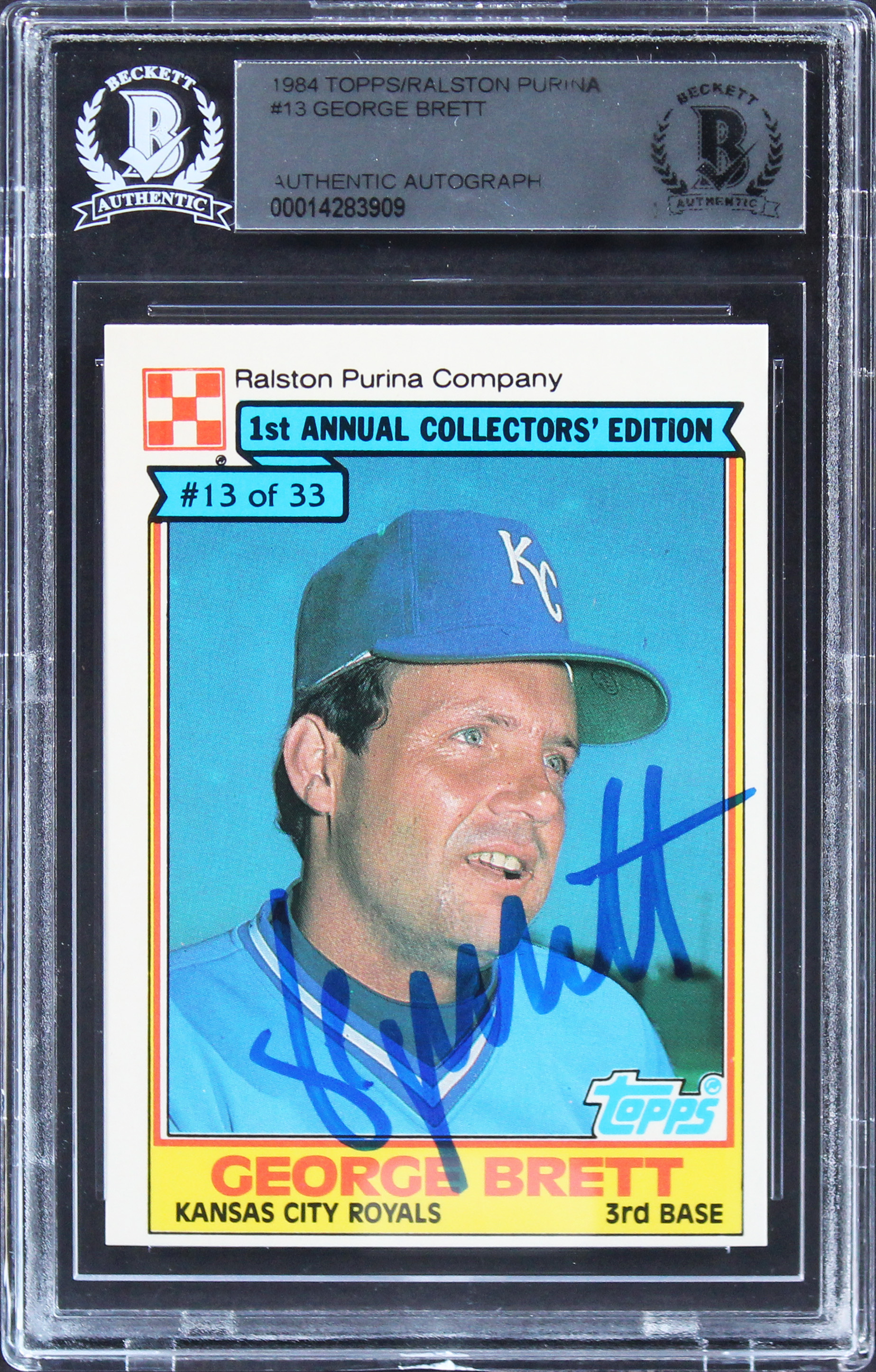 Royals George Brett Authentic Signed 1984 Topps/Ralston Purina #13 Card BAS Slab