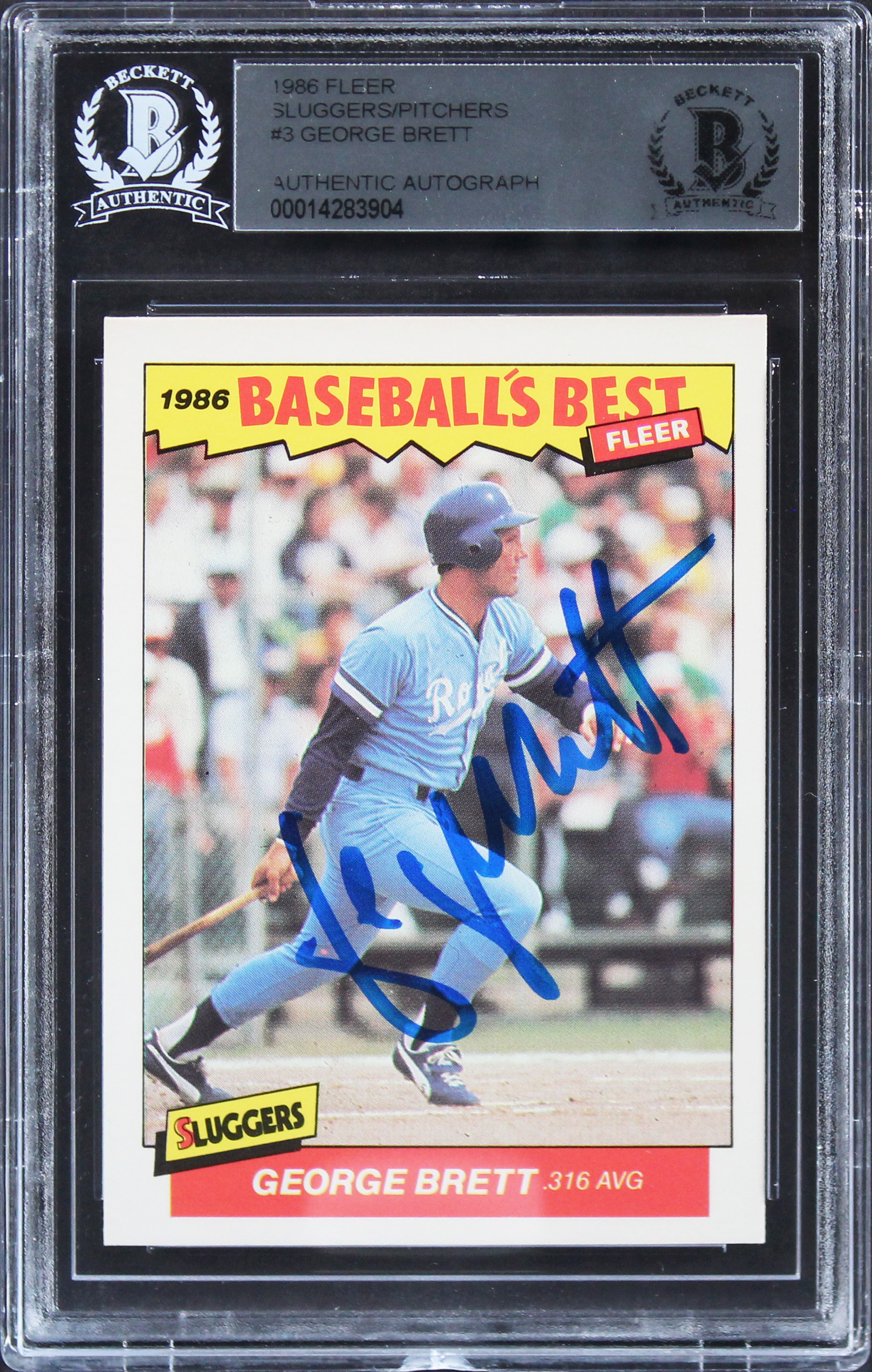Royals George Brett Signed 1986 Fleer Sluggers/Pitchers #3 Card BAS Slabbed