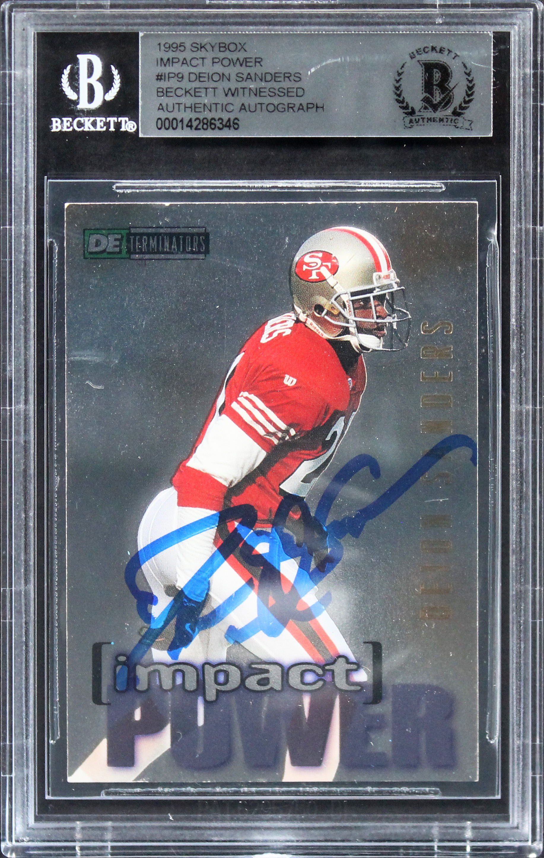 49ers Deion Sanders Authentic Signed 1995 Skybox Impact Power #IP9 Card BAS Slab