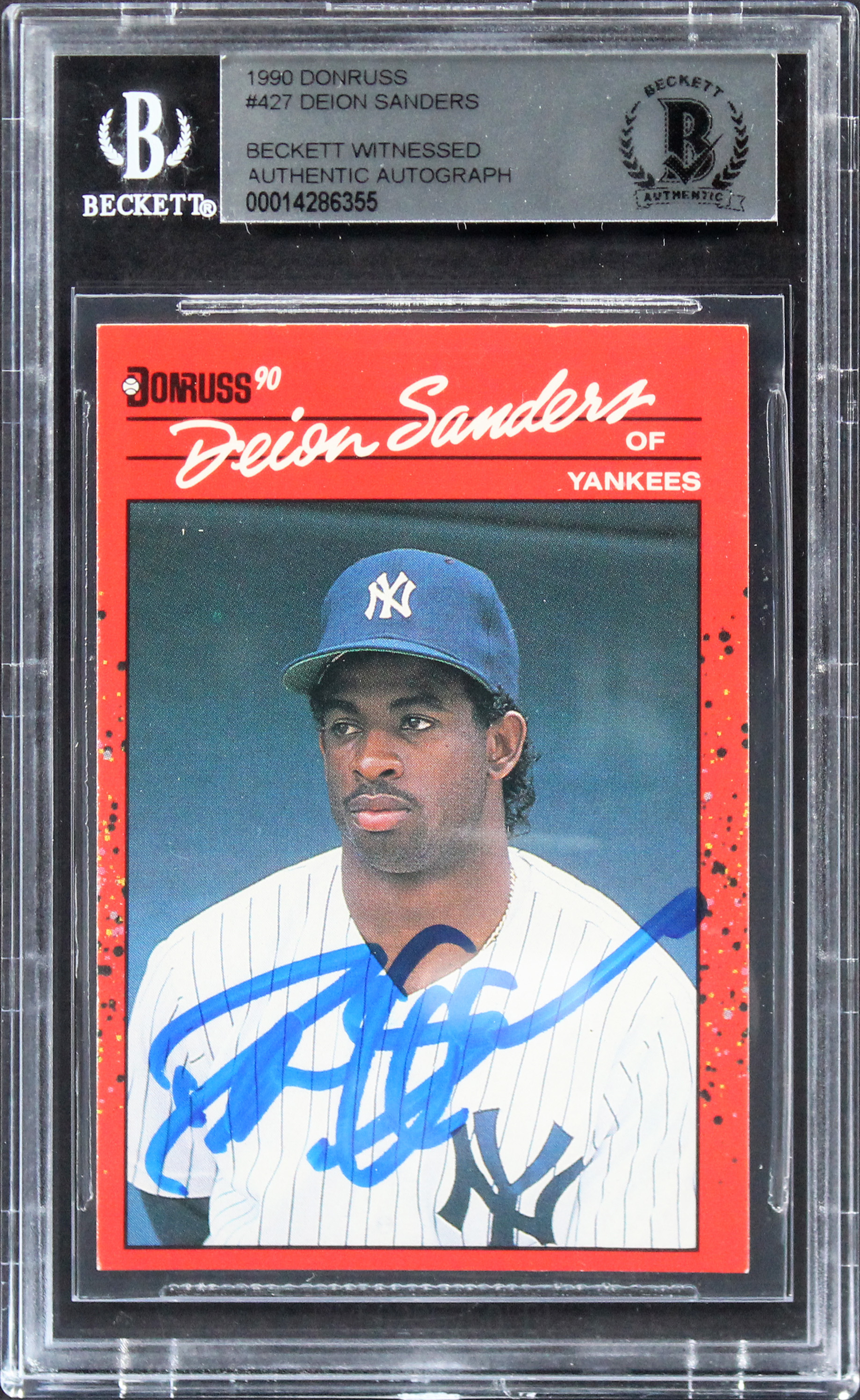 Yankees Deion Sanders Authentic Signed 1990 Donruss #427 Card BAS Slabbed