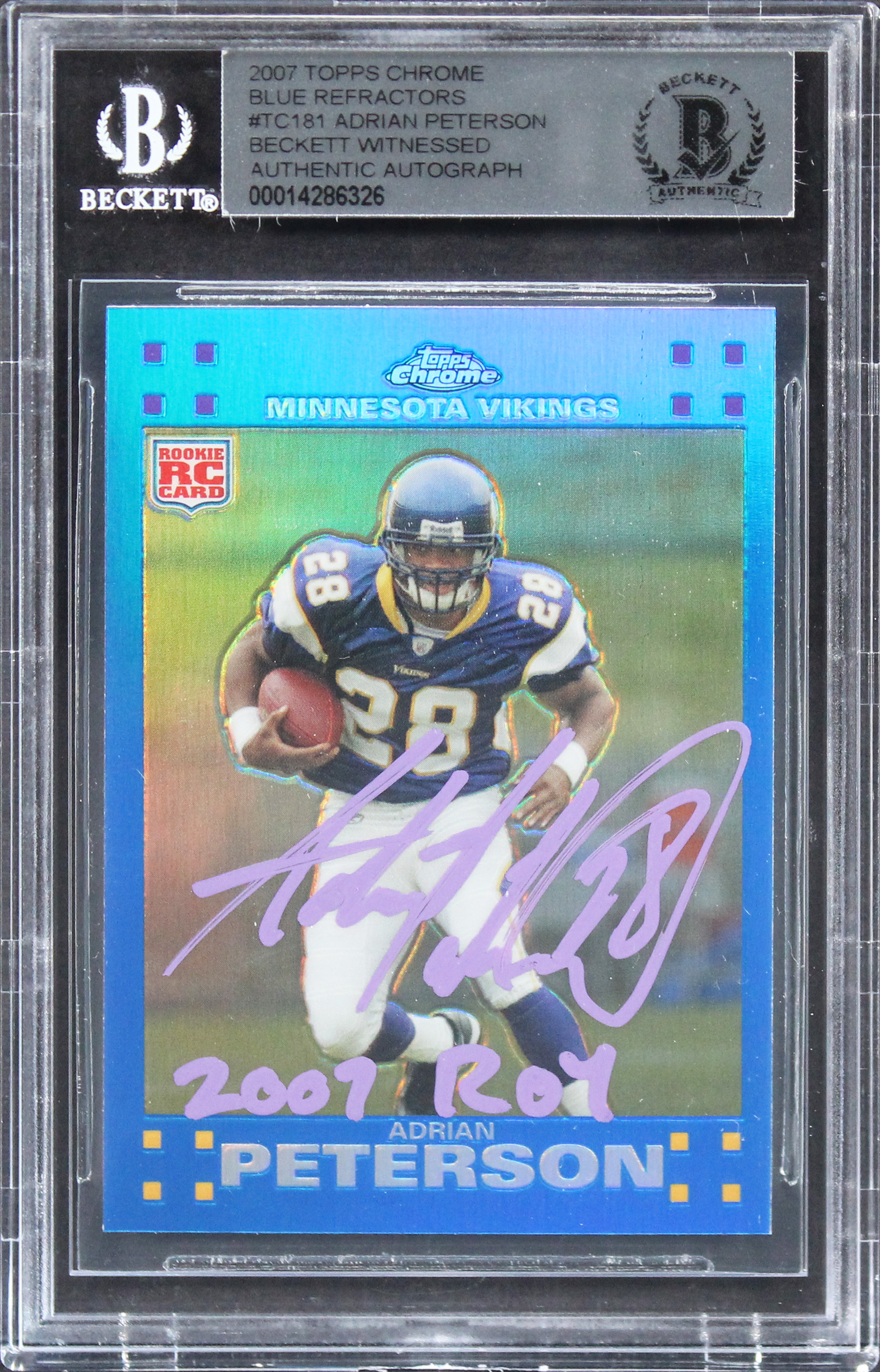 Adrian Peterson ROY 2007 Signed 2007 Topps Chrome Blue Ref #TC181 Card BAS Slab