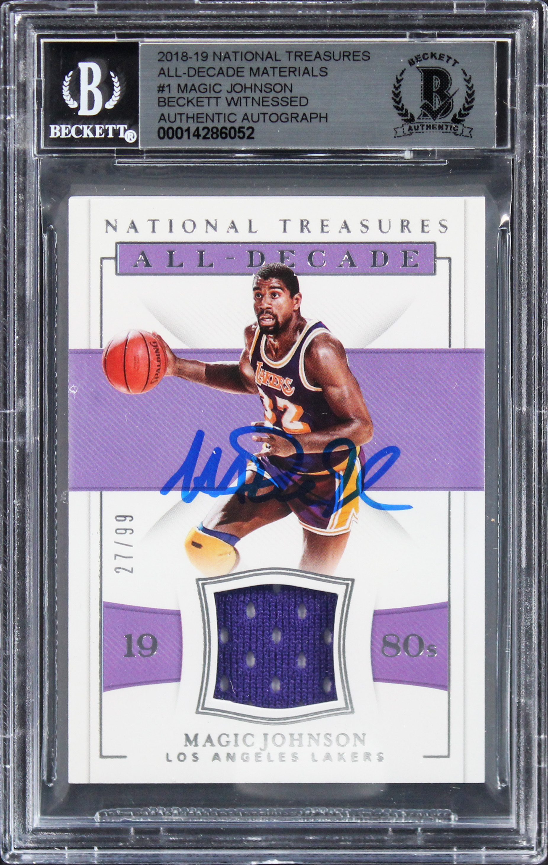 Magic Johnson Signed 2018 National Treasures All-Decade #1 Card Auto 10 BAS Slab