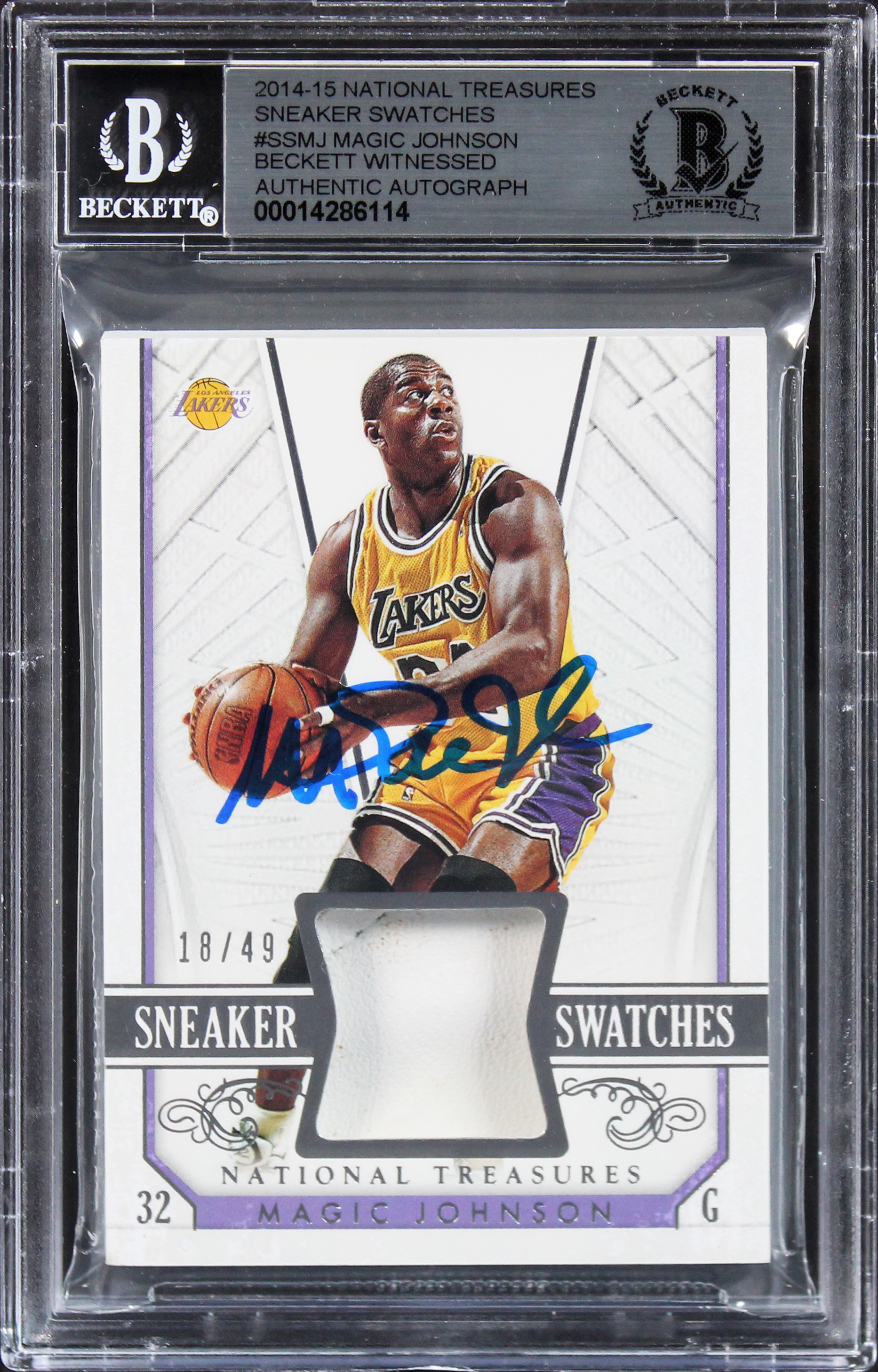 Magic Johnson Signed 2014 National Treasures Sneaker #SSMJ Card Auto 10 BAS Slab