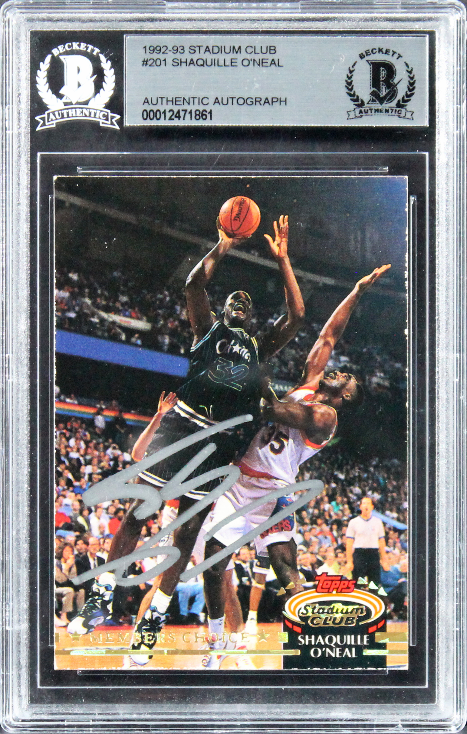 Magic Shaquille O'Neal Signed 1992 Stadium Club #201 Rookie Card BAS Slabbed