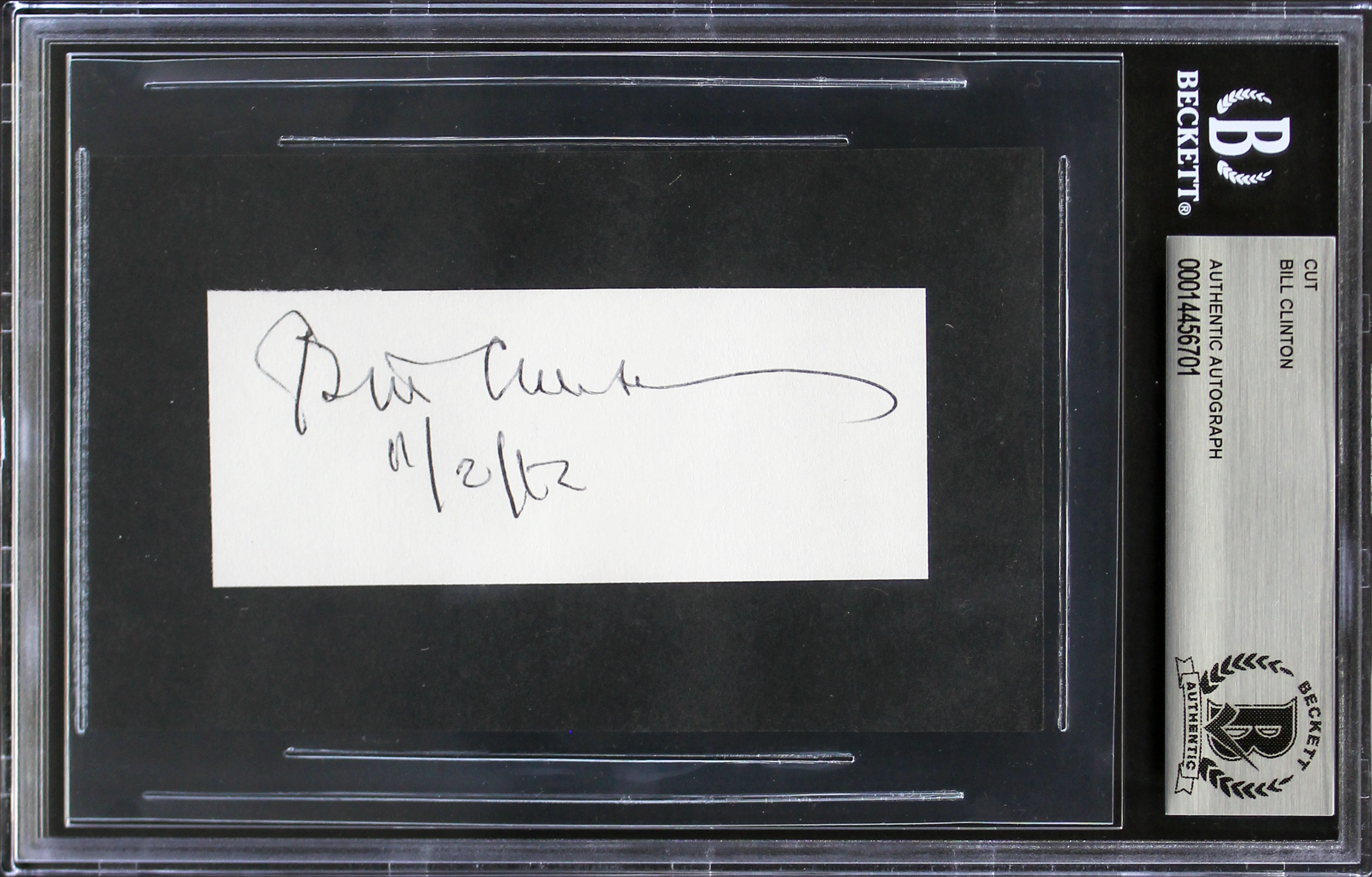 Bill Clinton "11/2/12" Authentic Signed 1.5x3.75 Cut Signature BAS Slabbed