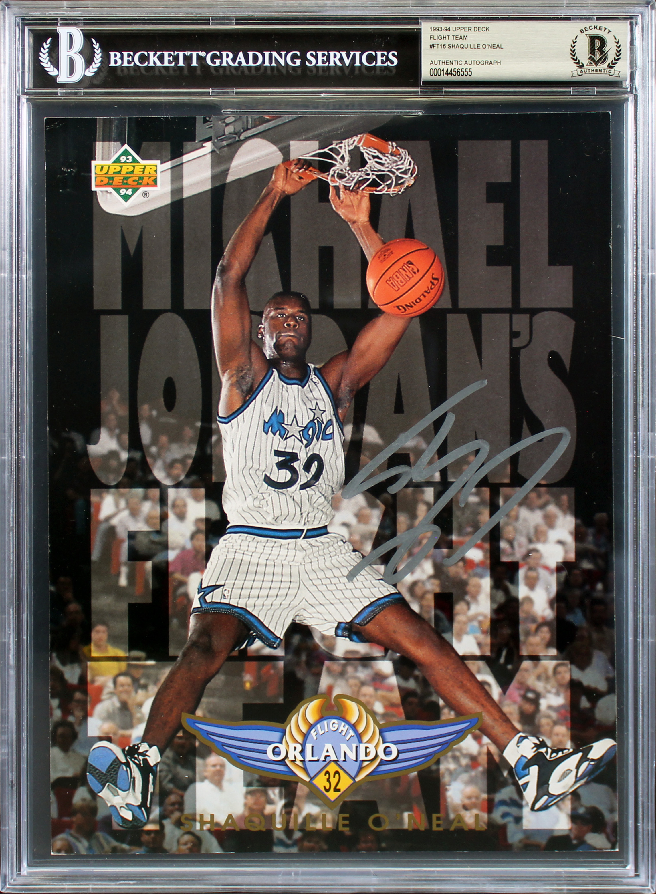 Magic Shaquille O'Neal Signed 8.25x10.75 1993 UD Flight Team #FT16 Card BAS Slab