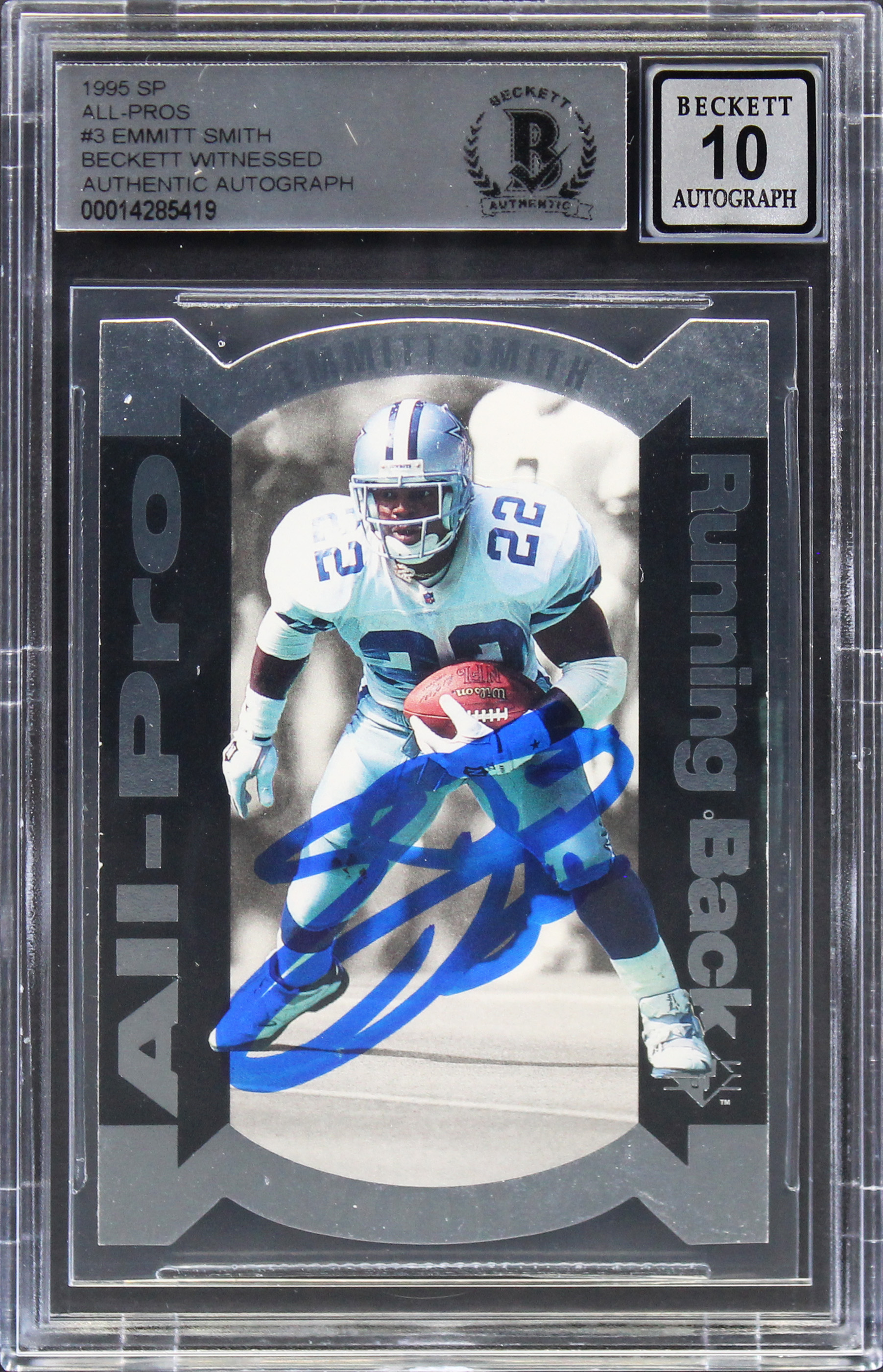 Cowboys Emmitt Smith Signed 1995 SP All-Pros #3 Card Auto Graded 10! BAS Slabbed