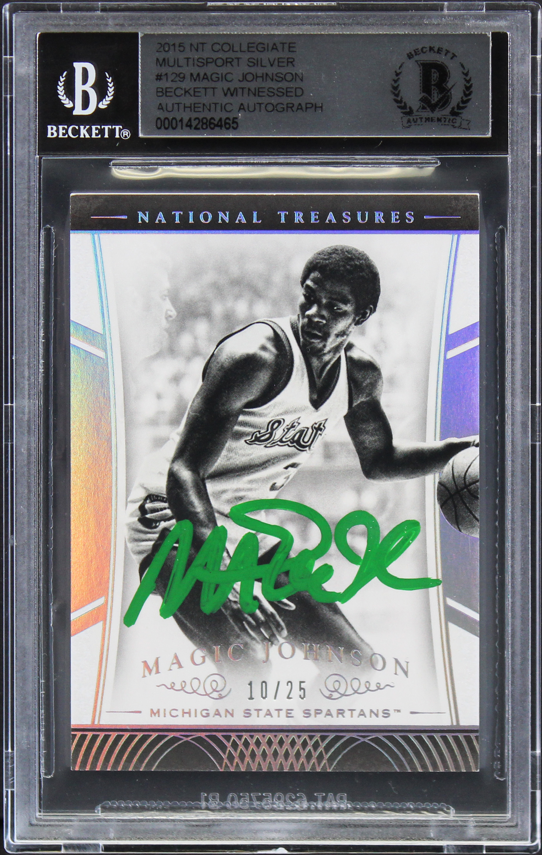 Magic Johnson Signed 2015 NT Collegiate MS Silver #129 #10/25 Card BAS Slabbed