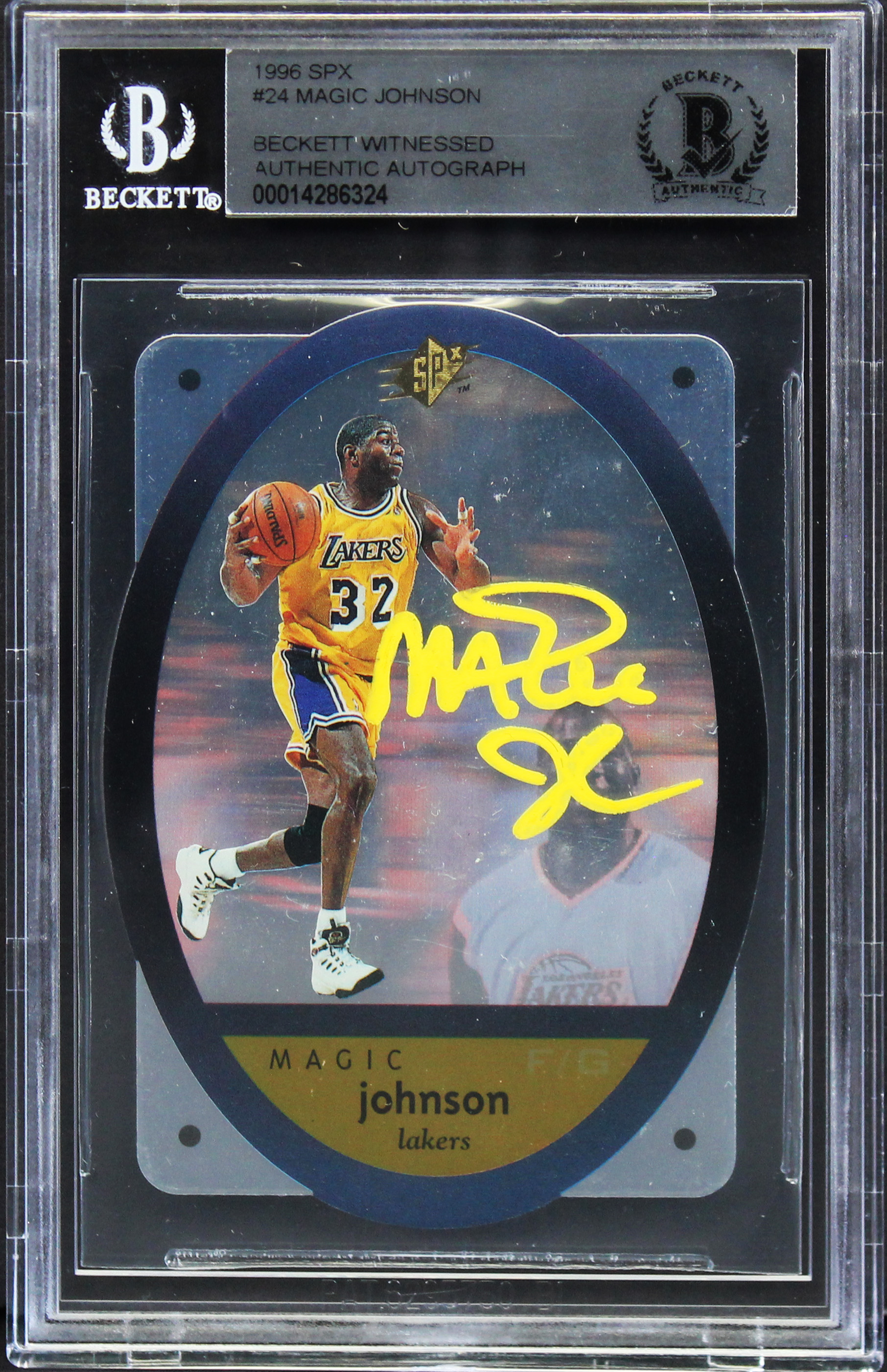 Lakers Magic Johnson Authentic Signed 1996 SPX #24 Card Autographed BAS Slabbed
